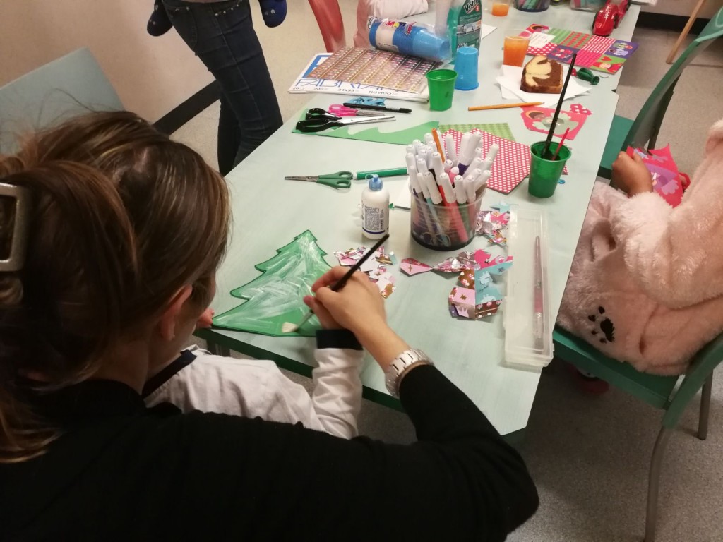Abbiamo iniziato a proporre le decorazioni natalizie nel reparto di Oncologia Pediatrica. Ieri anche i due più piccoli del reparto hanno tagliato e incollato in allegria, per realizzare assieme alle mamme l'albero della propria stanza. Crediamo che lo spirito del Natale debba essere proprio questo!