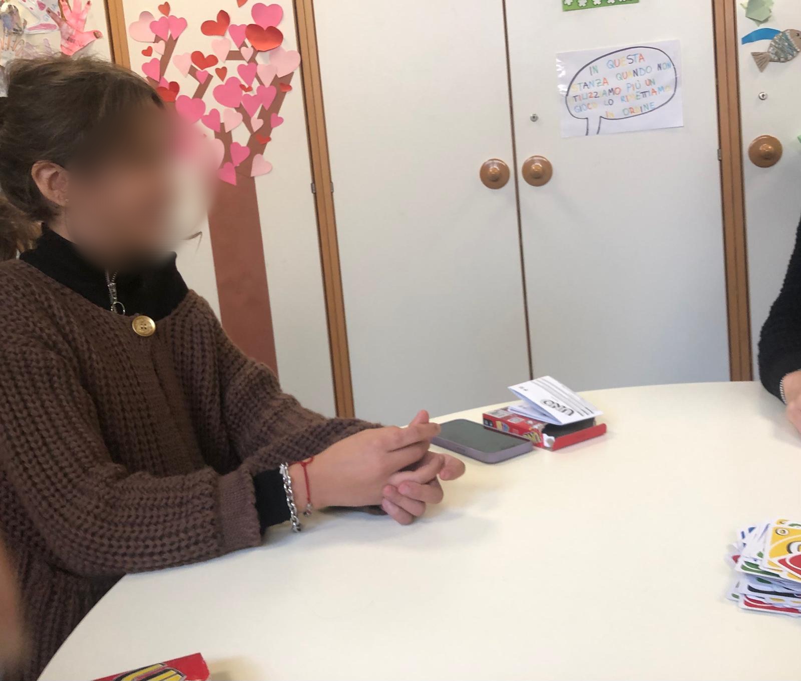 Virginia si è recata al Day Hospital di Ematologia, dove ha conosciuto la dolcissima A. Insieme si sono sfidate a Uno con delle carte diverse dal solito.
