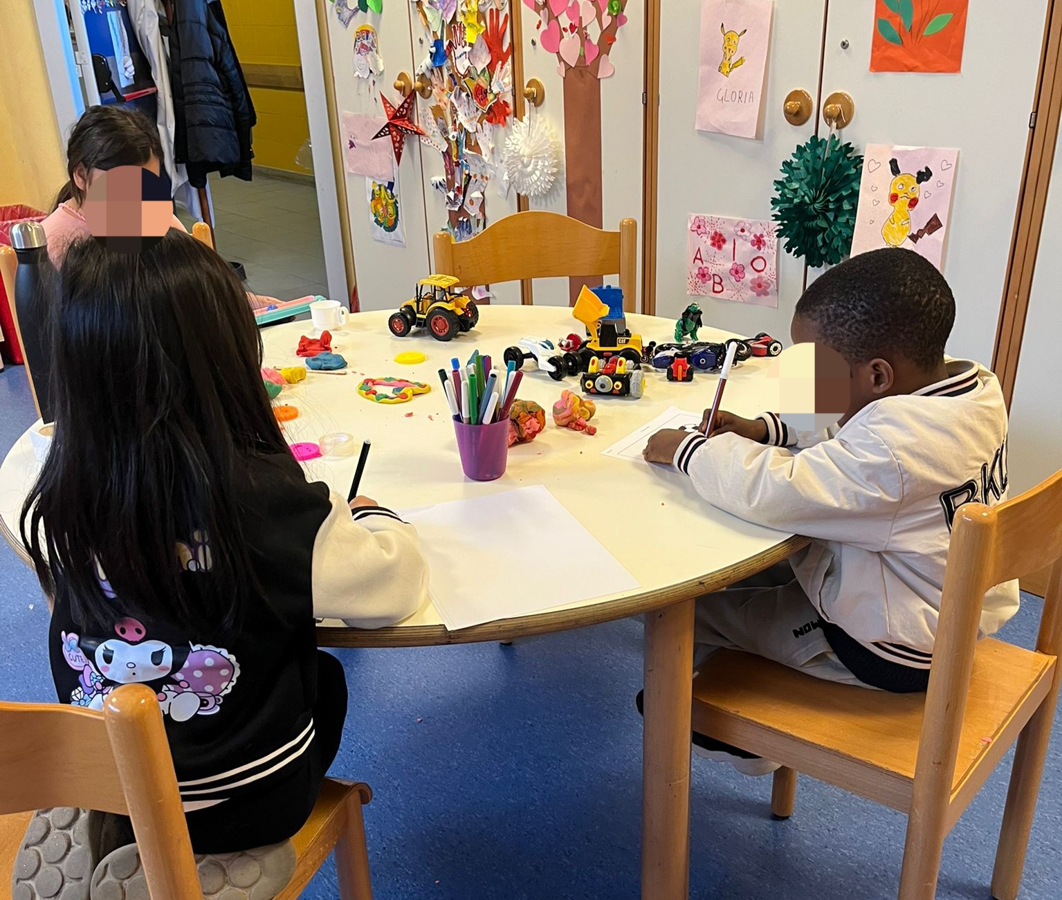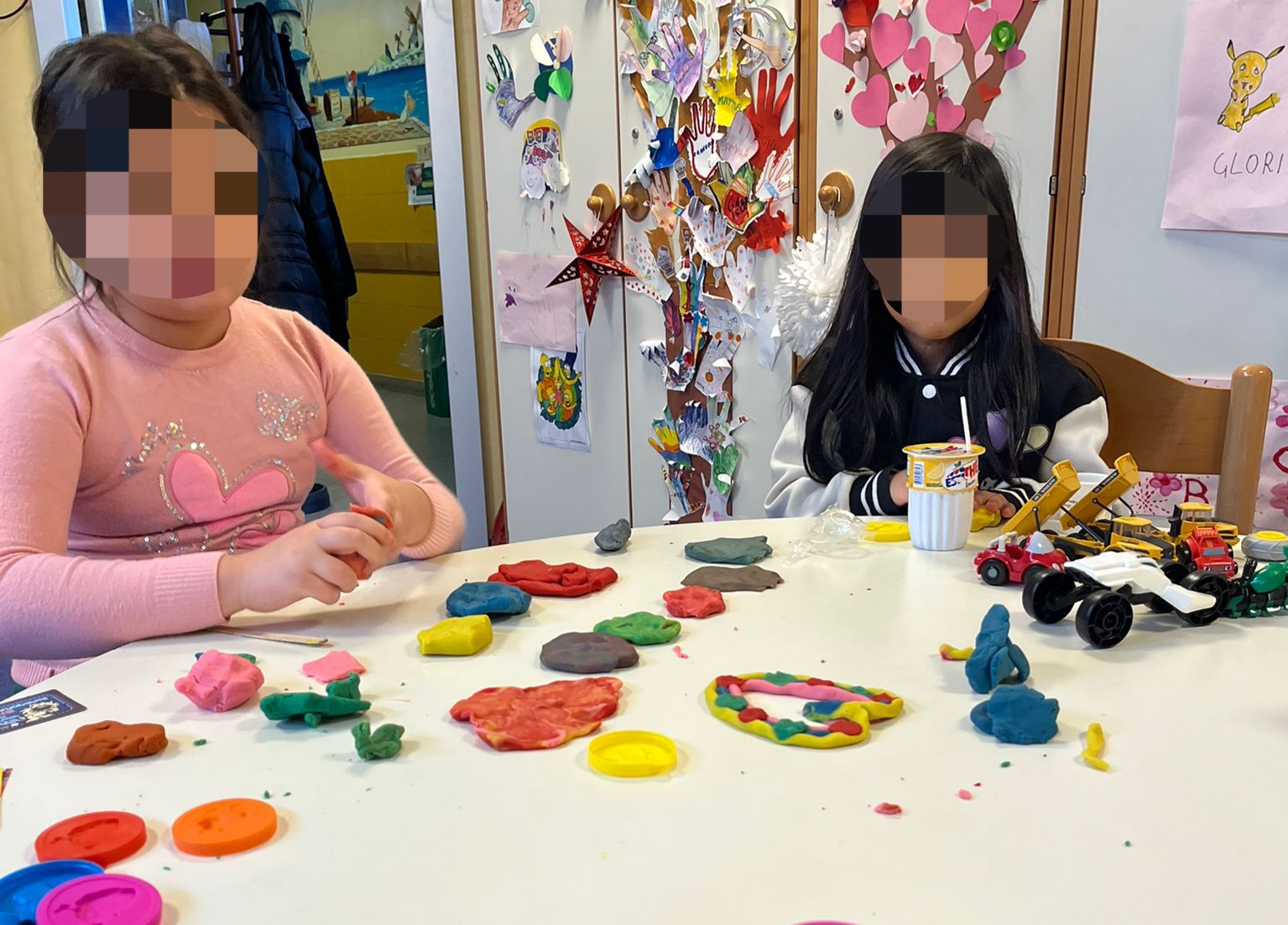 Oggi Lucrezia ha incontrato tantissimi bimbi! Insieme hanno fatto delle creazioni con il pongo, poi D. ha giocato con la lavagnetta, S. e A. con le macchinine e, infine, B. e A. hanno ripreso l’arte in mano disegnando e colorando tantissimo. Che bello stare insieme e allietare le mattine dei bimbi!