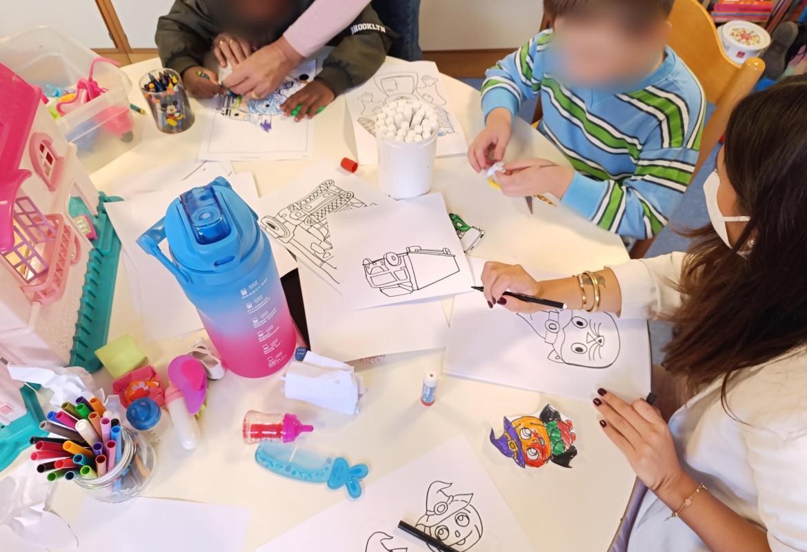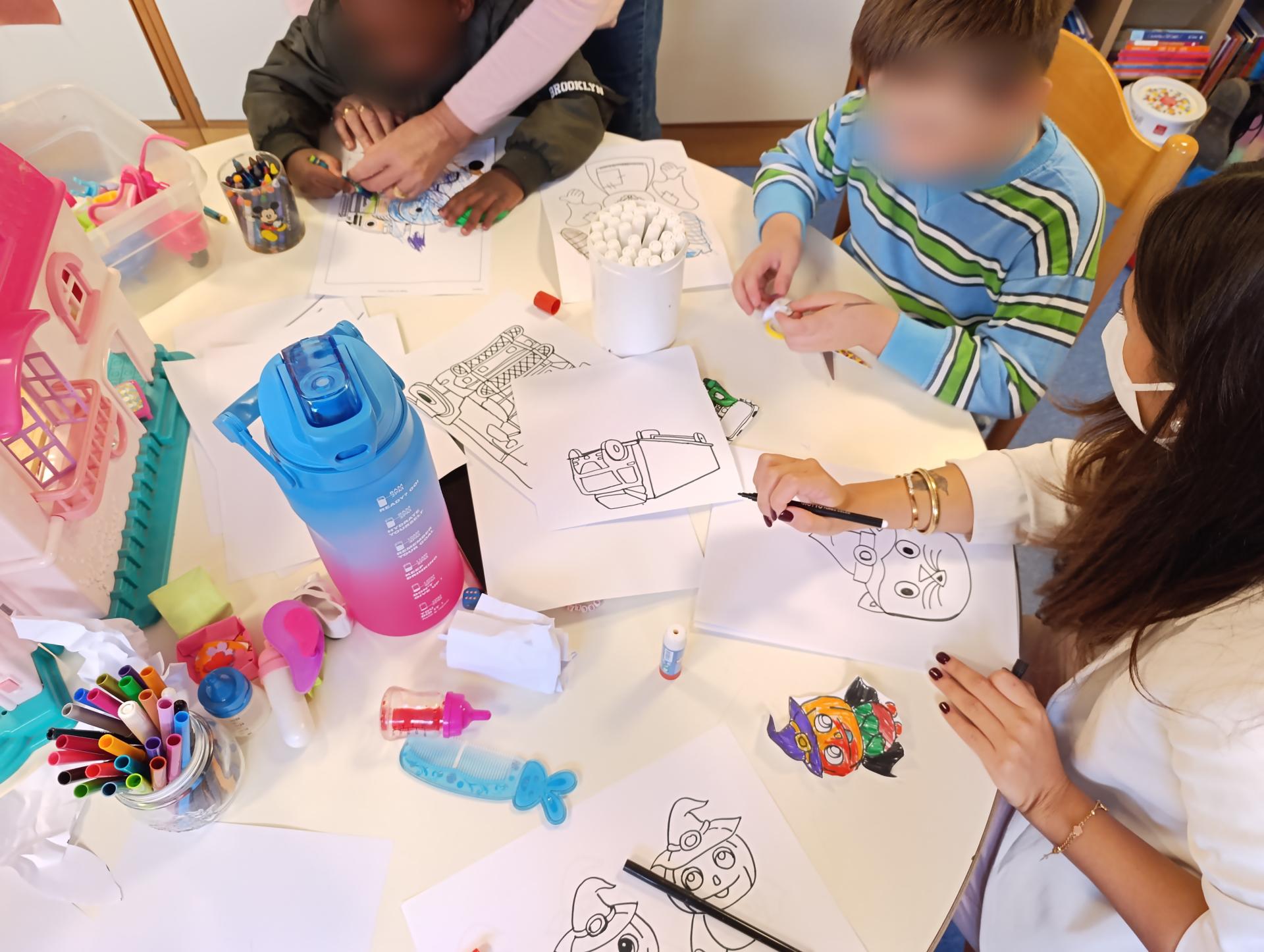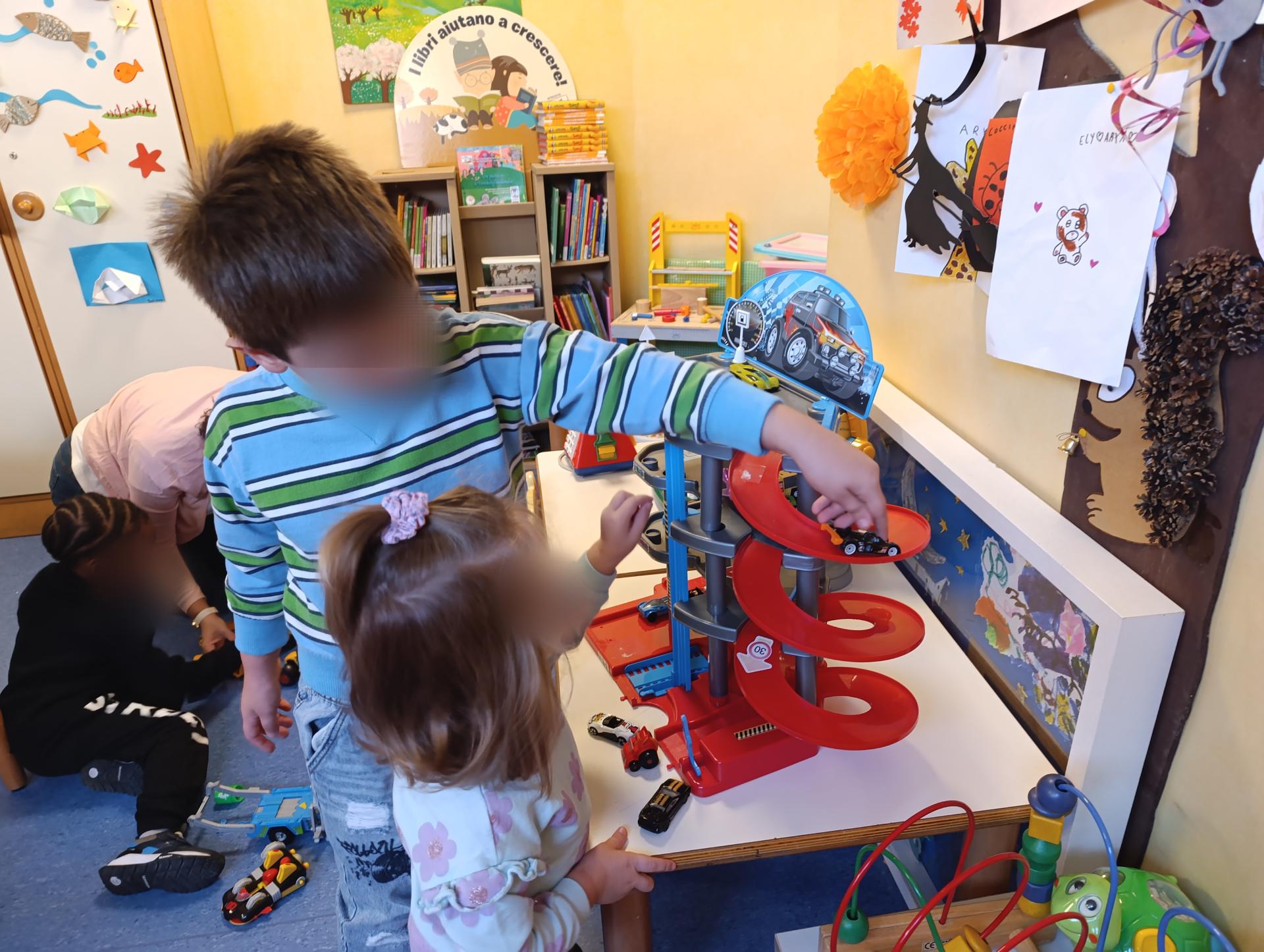 Oggi Nhamhiria e Angelica hanno incontrato T. E L.,due fratellini, e poi A.,Di. E A., un'altra tripletta di fratelli. In un attimo la sala si è riempita di risate e giochi di ogni tipo!