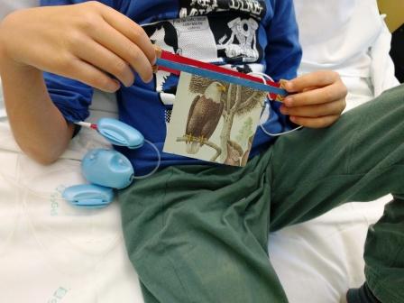Ognuno ha un suono diverso, ognuno produce un momento di simpatia. Come li abbiamo fatti? Con l'ingegno e usando quel poco che si ha in reparto; elastici, abbassalingua, tappi di sughero, spago e cartoncino. L'attività è stata possibile grazie al progetto "Il sabato del villaggio" sostenuto dai fondi Otto per Mille della Chiesa Valdese (Unione delle Chiese Valdesi e Metodiste).