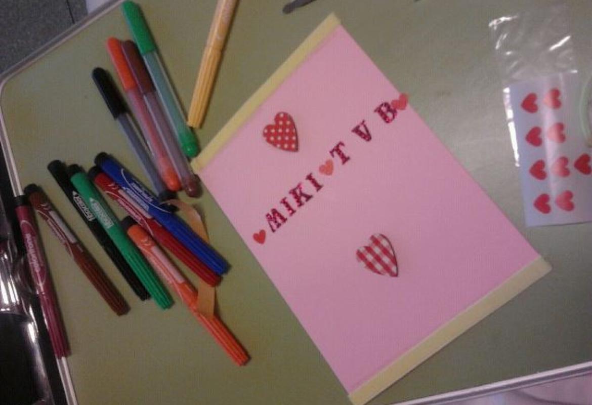 Nella giornata di San Valentino i bambini del reparto di Oncologia Pediatrica hanno ideato con i ludoterapisti degli affettuosi biglietti d’auguri. Alcuni sono stati più tradizionali, altri assolutamente originali, come il labirinto di cuori, un porta di cannucce con cuore per la vasca dei pesci del nonno e un biglietto per la mamma con una casa della AS Roma a forma di cuore.