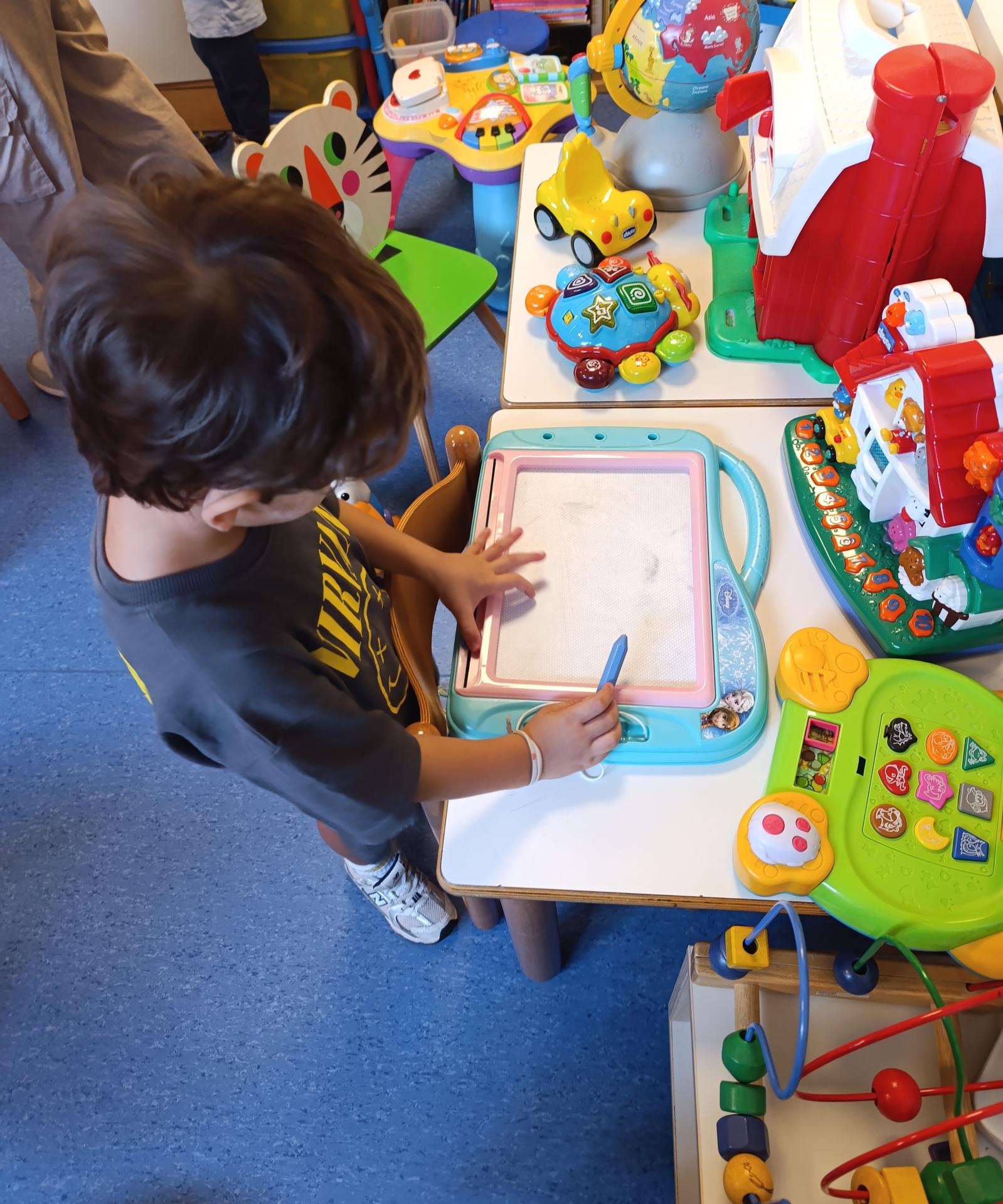 Che dolcezza questa mattinata! Nhamhiria ha incontrato L., con cui ha giocato un po' con diversi oggetti della sala giochi e poi ha conosciuto C., che era un po' spaventato di fare le analisi, ma poi ha preso coraggio ed è riuscito. Dopo, quando è tornato in Sala, è stato super felice di condividere l'esperienza con i bambini e di dar loro consigli su come affrontare le analisi.