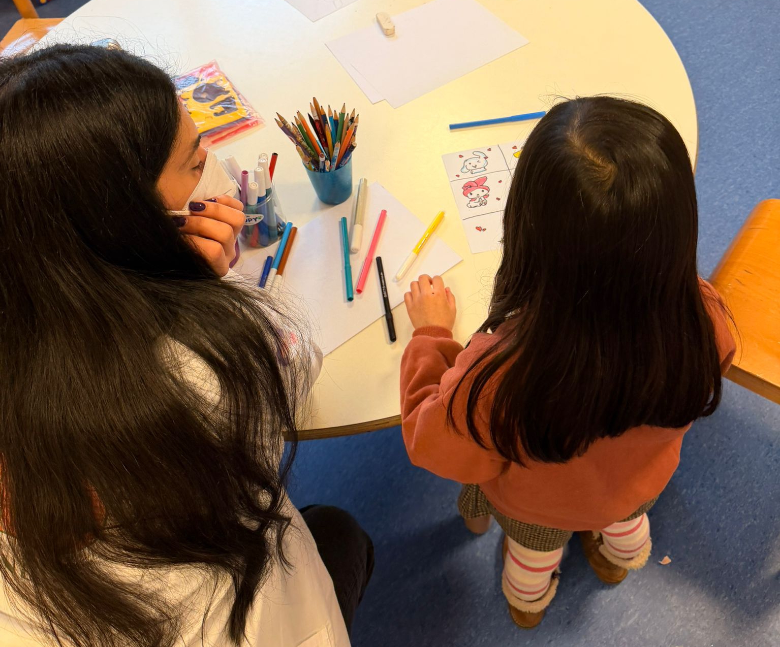 Oggi Lucrezia e Angelica hanno incontrato due piccole amiche di lunga data di Sale in Zucca: B. e S. Tutte insieme hanno giocato a Memory e fatto una gara di disegni di Kuromi ed Hello Kitty!