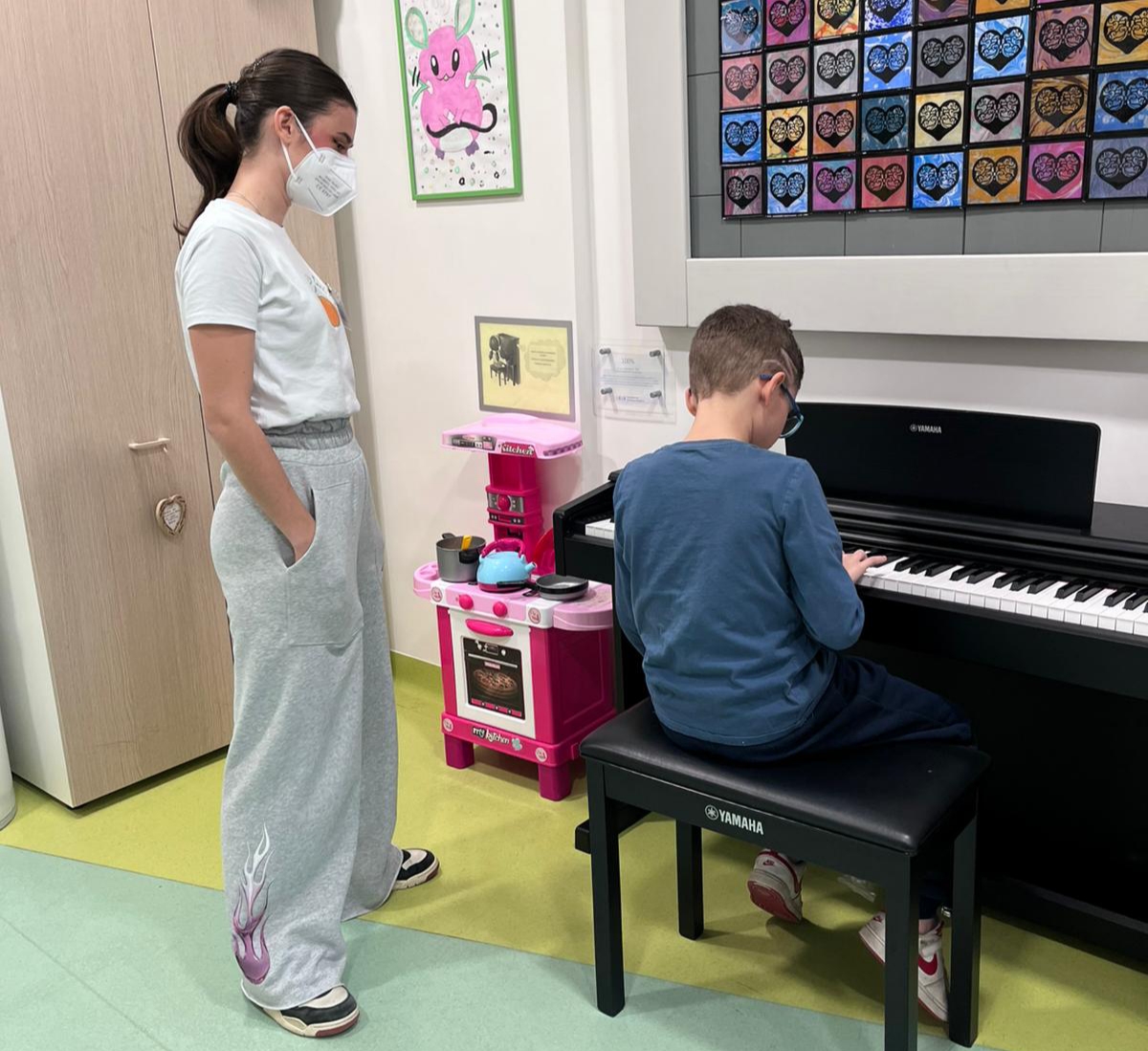 Lucrezia e Nhamhiria hanno passato il pomeriggio in compagnia di D. un bambino super divertente e intelligente, a cui è piaciuto tanto esplorare la sala Giochi del Reparto. Insieme hanno giocato a Rubick Race e Forza 4 versione basket. D. ha anche suonato il piano per far sentire canzoni che ama di più alle nostre operatrici, raccontando che fosse una passione trasmessa dal papà.