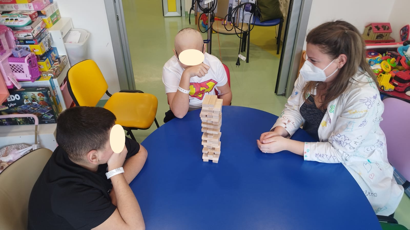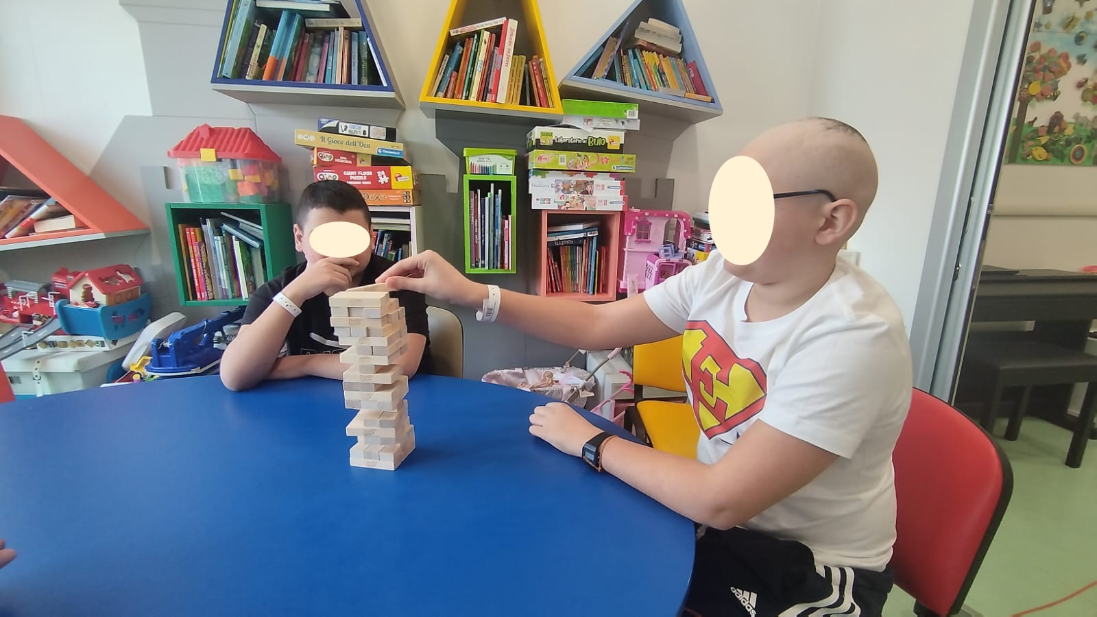 Oggi Sale in Zucca si è recata al Policlinico Agostino Gemelli per svolgere Ludoterapia. Erika e Valentina nel reparto di Oncologia Pediatrica hanno visto D. un piccolo spiderman e gattoboy, e poi insieme A. e E., due ragazzi che all'inizio non volevano venire, ma poi dopo aver iniziato la prima partita a Jenga non sono più voluti andare via, anzi ne abbiamo fatte altre 3!