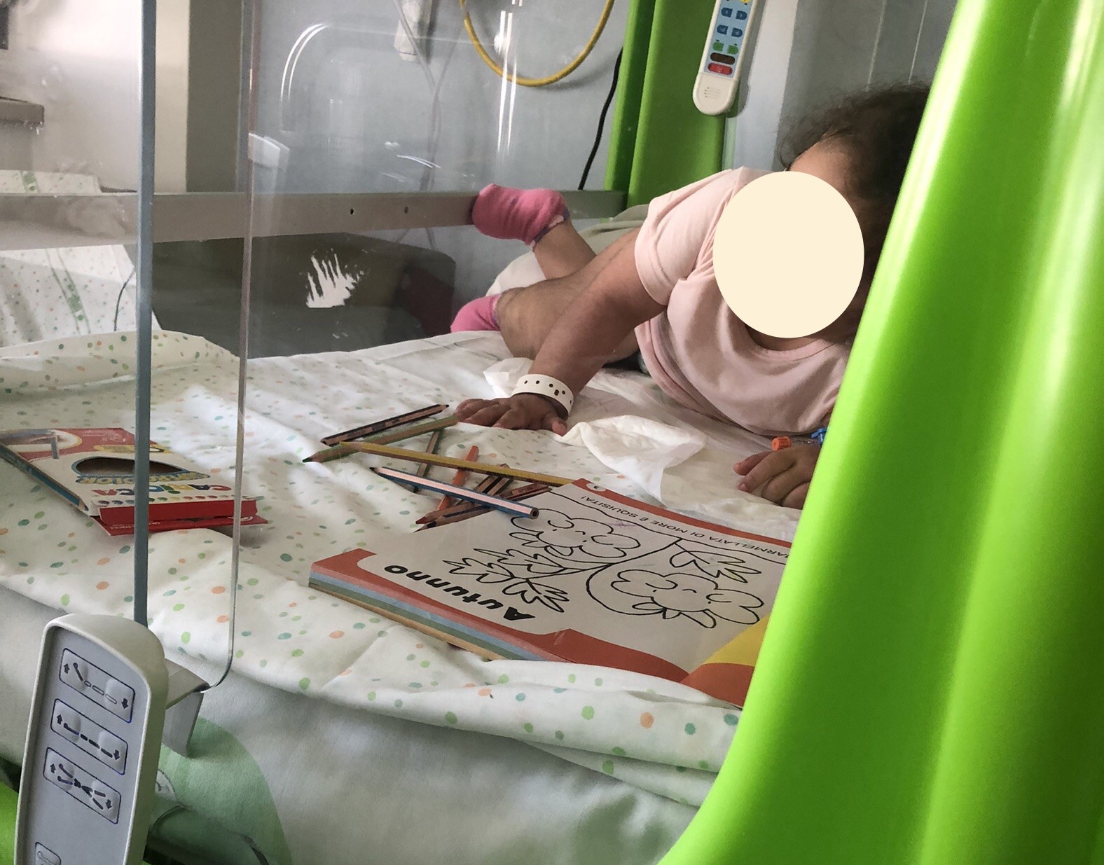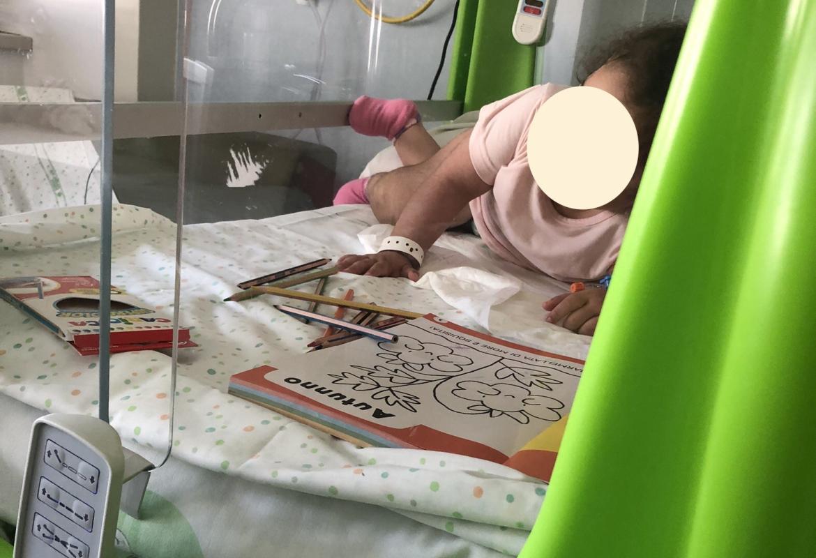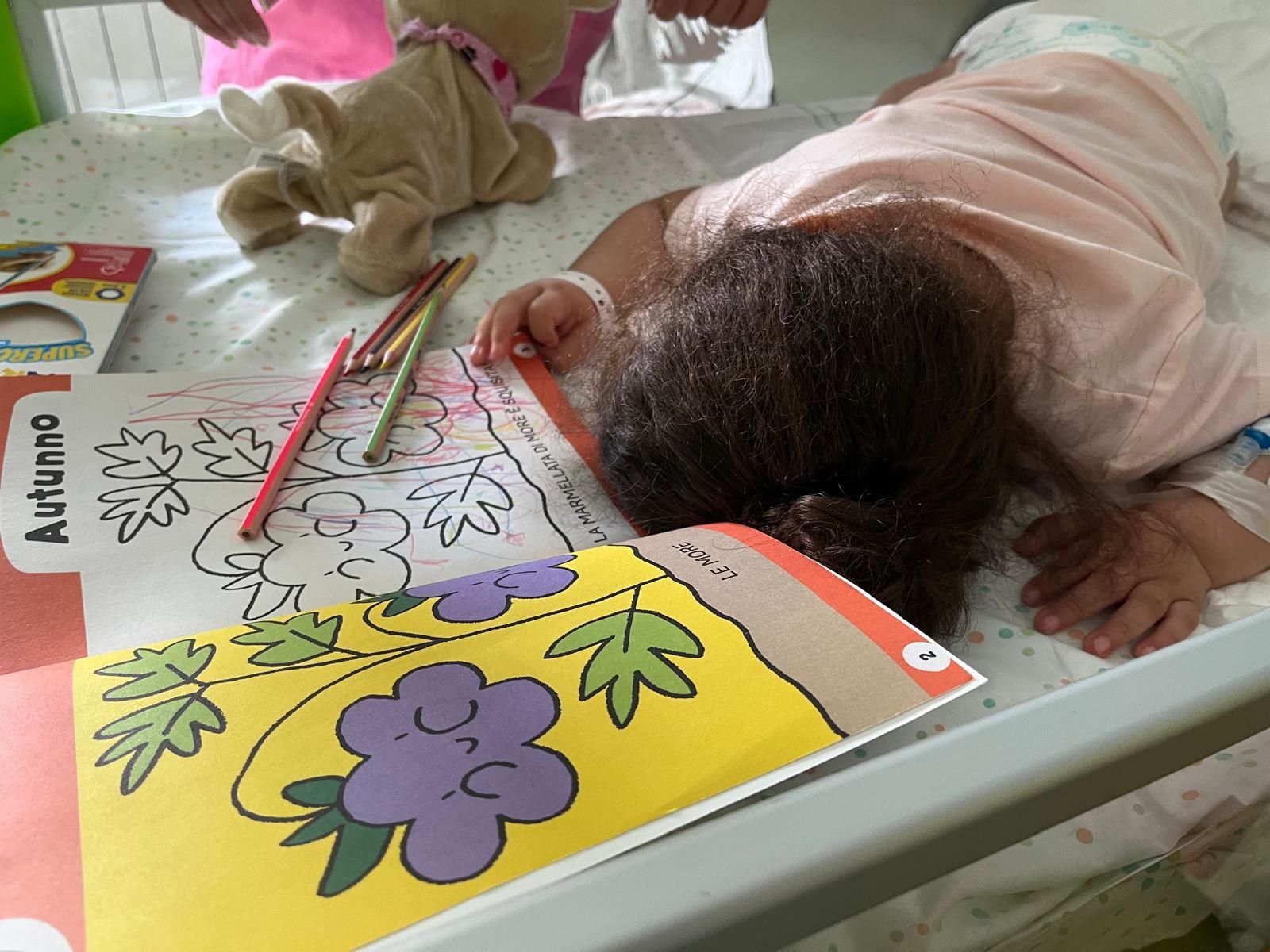 Mentre nel reparto di Neurochirurgia Infantile Lucrezia e Virginia hanno visto la piccola A. con la quale hanno scambiato dei sorrisi, invece insieme ad A. hanno colorato un bellissimo disegno.