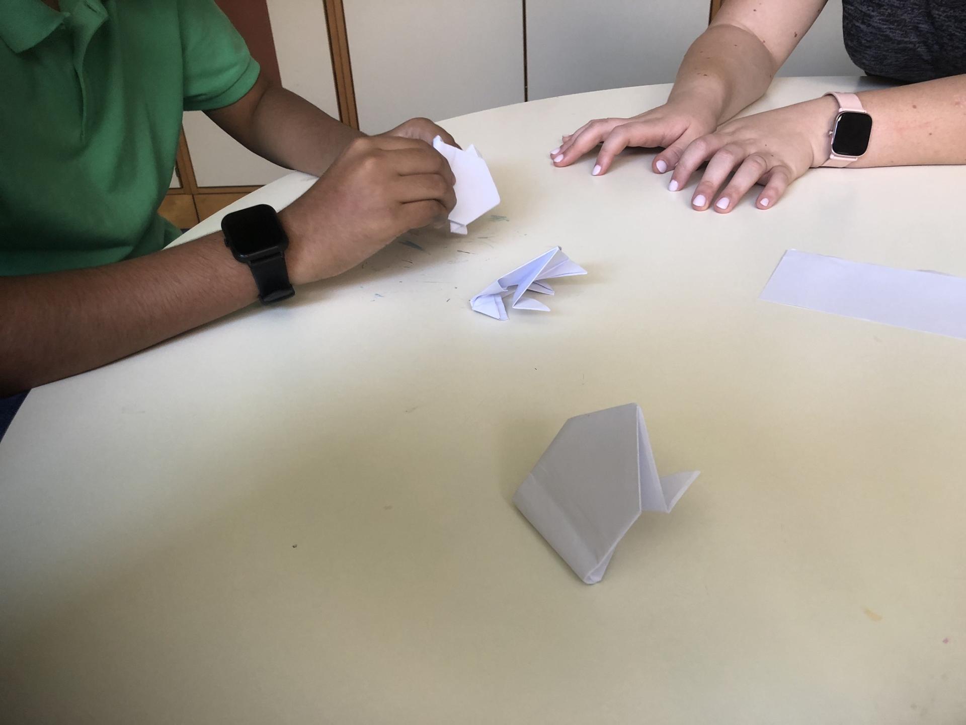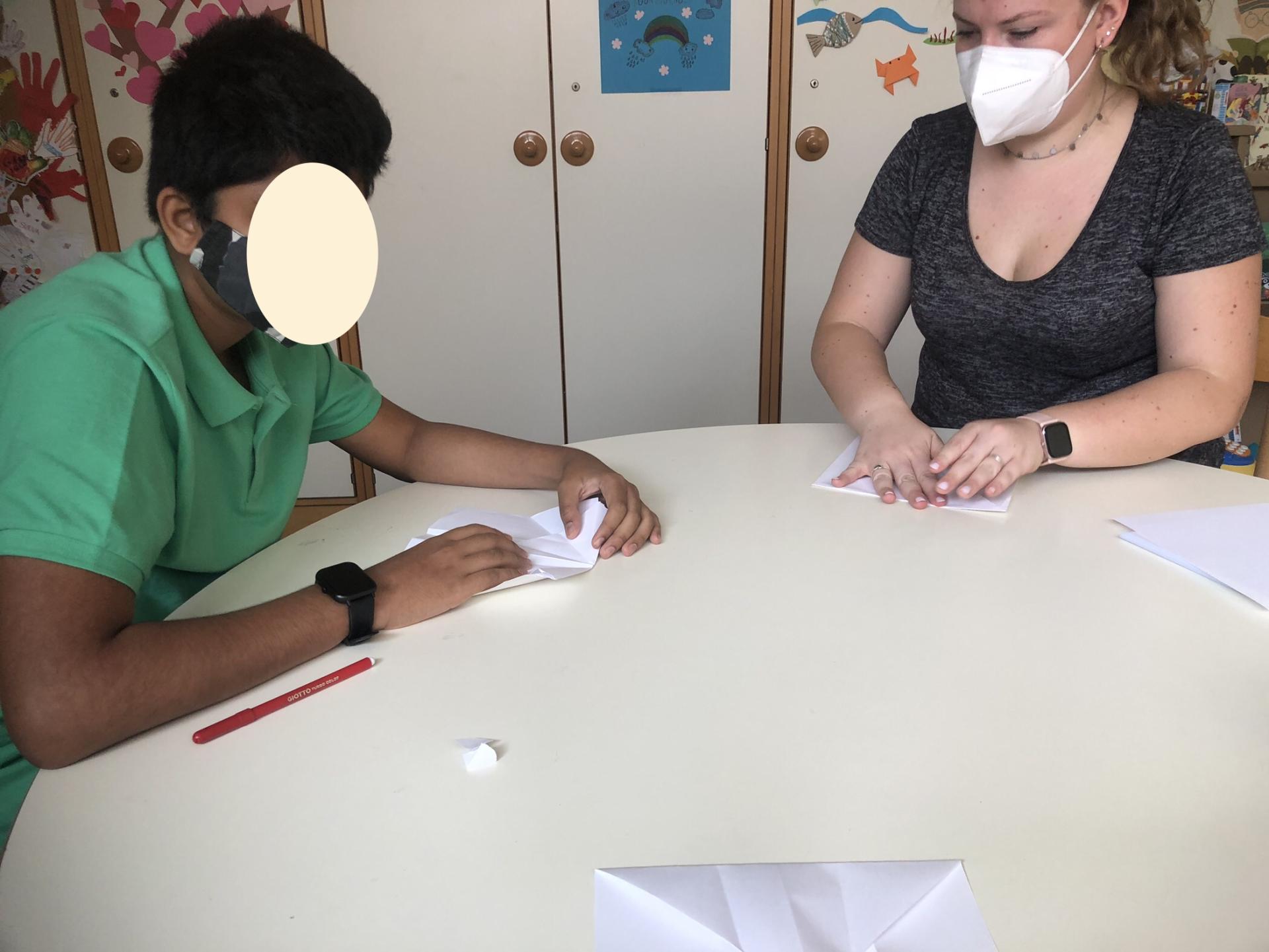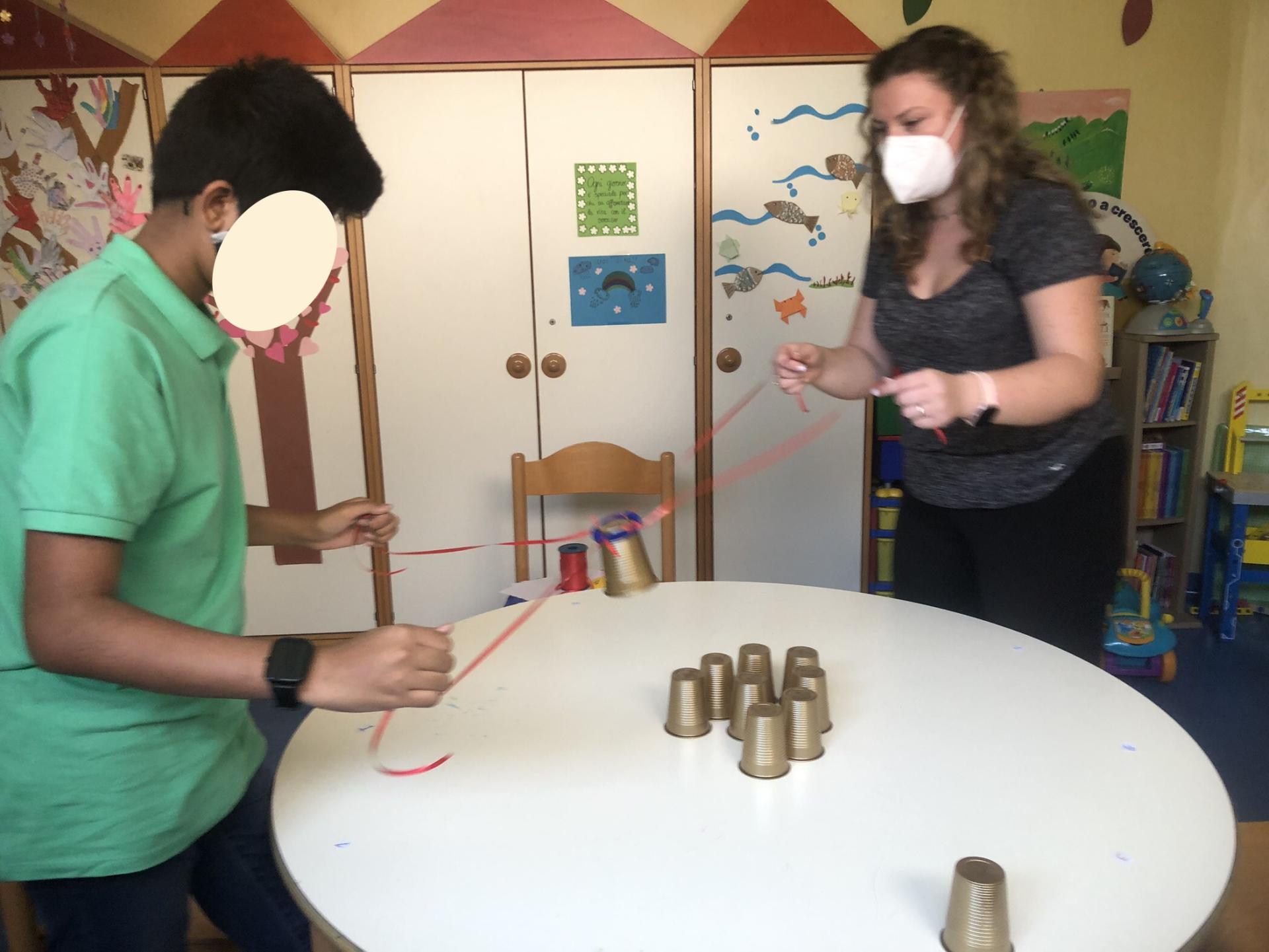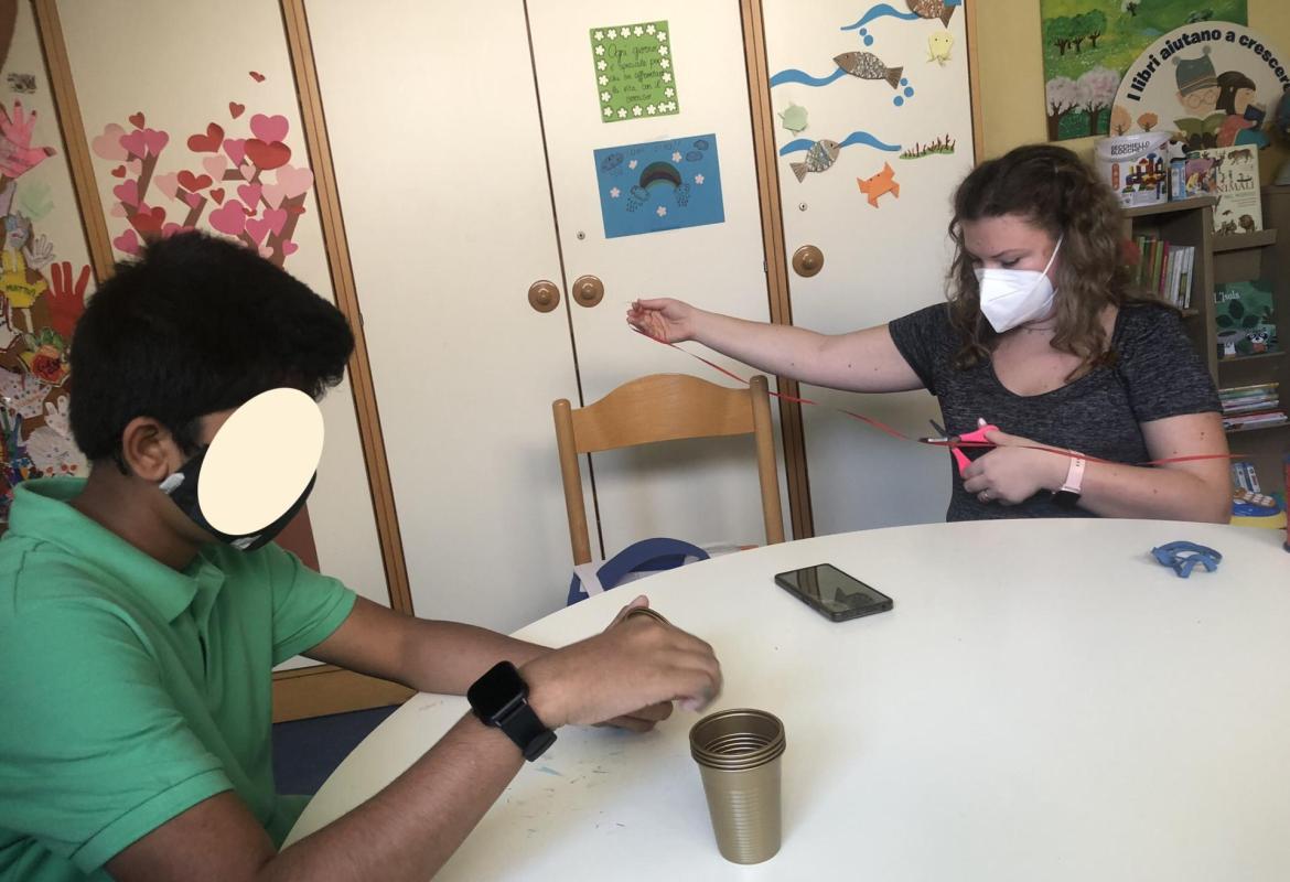 Erika e Virginia sono datate al Day Hospital di Ematologia del Policlinico Umberto I. Insieme a k. si sono divertiti a fare dei fantastici origami, poi insieme a V. hanno fatto dei biscottini della fortuna da regalare alle persone a loro più care. Infine, con l’aiuto di bicchieri, un elastico e dei numeretti ci siamo sfidati ad un divertentissimo gioco a tempo.