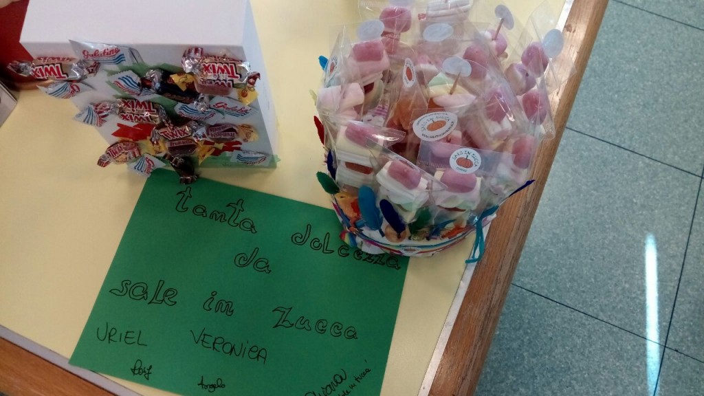 Sabato scorso le ludoterapiste di Sale in Zucca Onlus hanno portato tanta dolcezza per tutti i bambini, i loro genitori e il personale del reparto di Oncologia Pediatrica del Policlinico Gemelli di Roma. il pomeriggio è volato in un batter d'ali, il divertimento e la realizzazione di spiedini di caramelle hanno coinvolto tutti e addolcito il clima. Avevamo tutti bisogno di dolcezza.