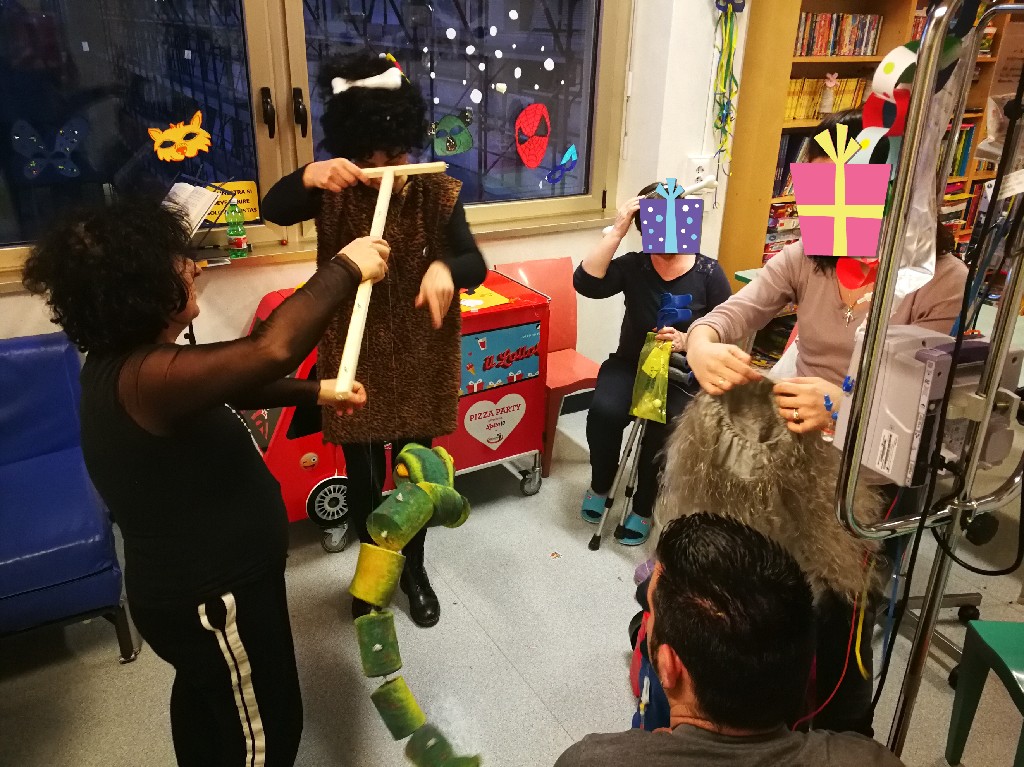 Un altro sabato pomeriggio ad Oncologia Pediatrica, un'altra avventura da ricordare. Ci siamo dilettati, unendoci allo spirito del Carnevale, leggendo Storie della Preistoria di Moravia e truccandoci come primitivi. E' stato esilarante ed abbiamo passato un pomeriggio che ricordemo a lungo!