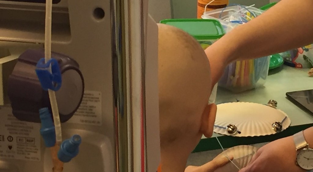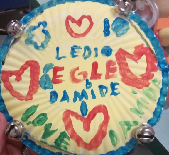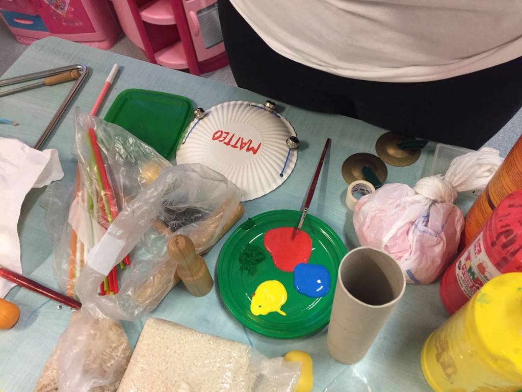 Questo sabato nel reparto di Oncologia Pediatrica del Policlinico Gemelli abbiamo ideato vari strumenti musicali con materiale di riciclo: i tamburelli con piatti di carta e campanelle (e naturalmente un tocco di colore per personalizzarli), mentre le maracas con cucchiai di plastica e ovetti. I bambini si sono sbizzarriti nel creare i suoni mischiando riso, farro, pastina, pepe e origano.