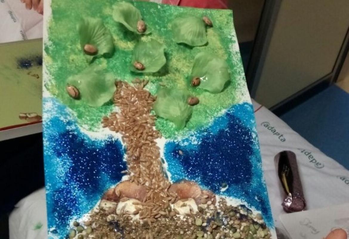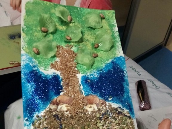 E alla fine.. ma che musica maestro! Gli strumenti funzionano alla grande! Martina invece nella sua stanza ha preferito dedicarsi ad un'altra arte e con semi e tempere ha creato un albero.