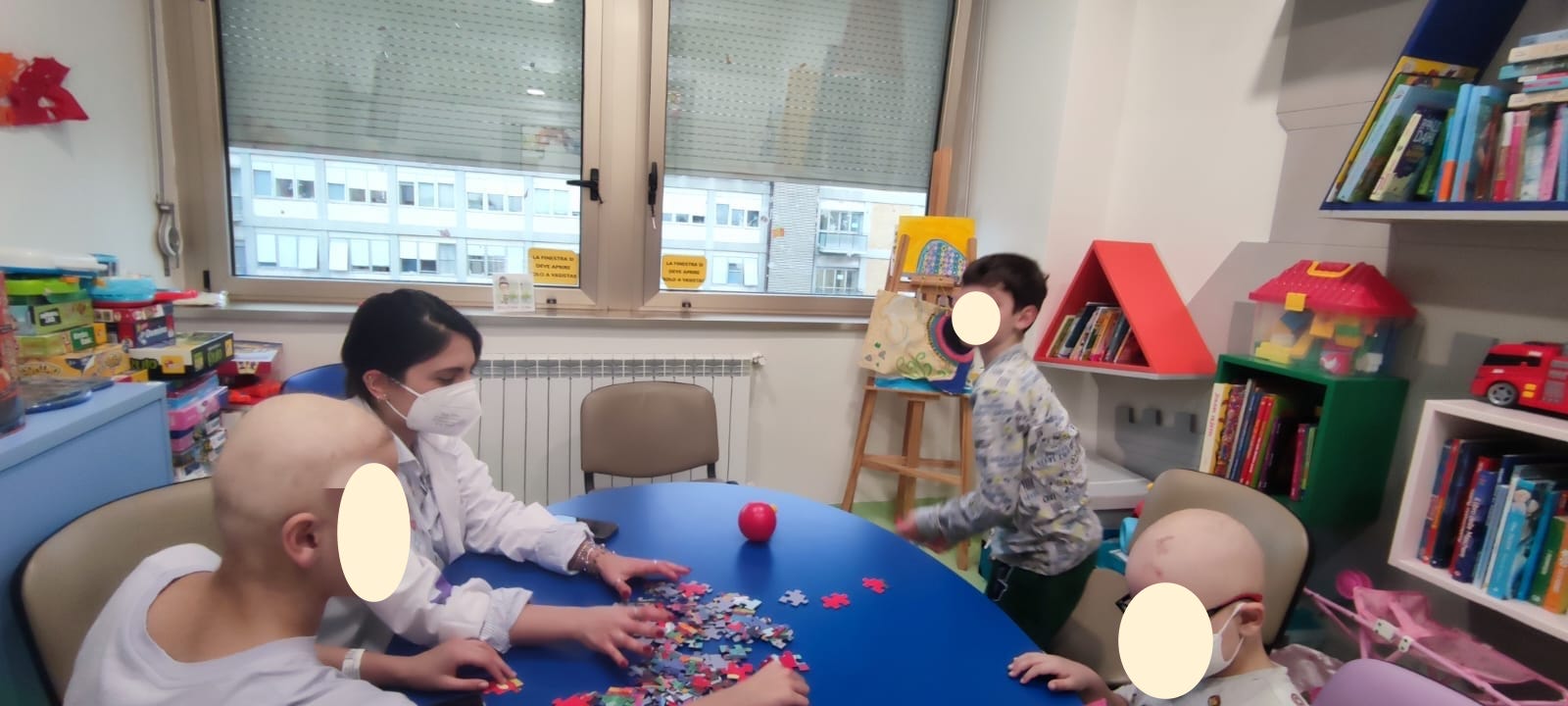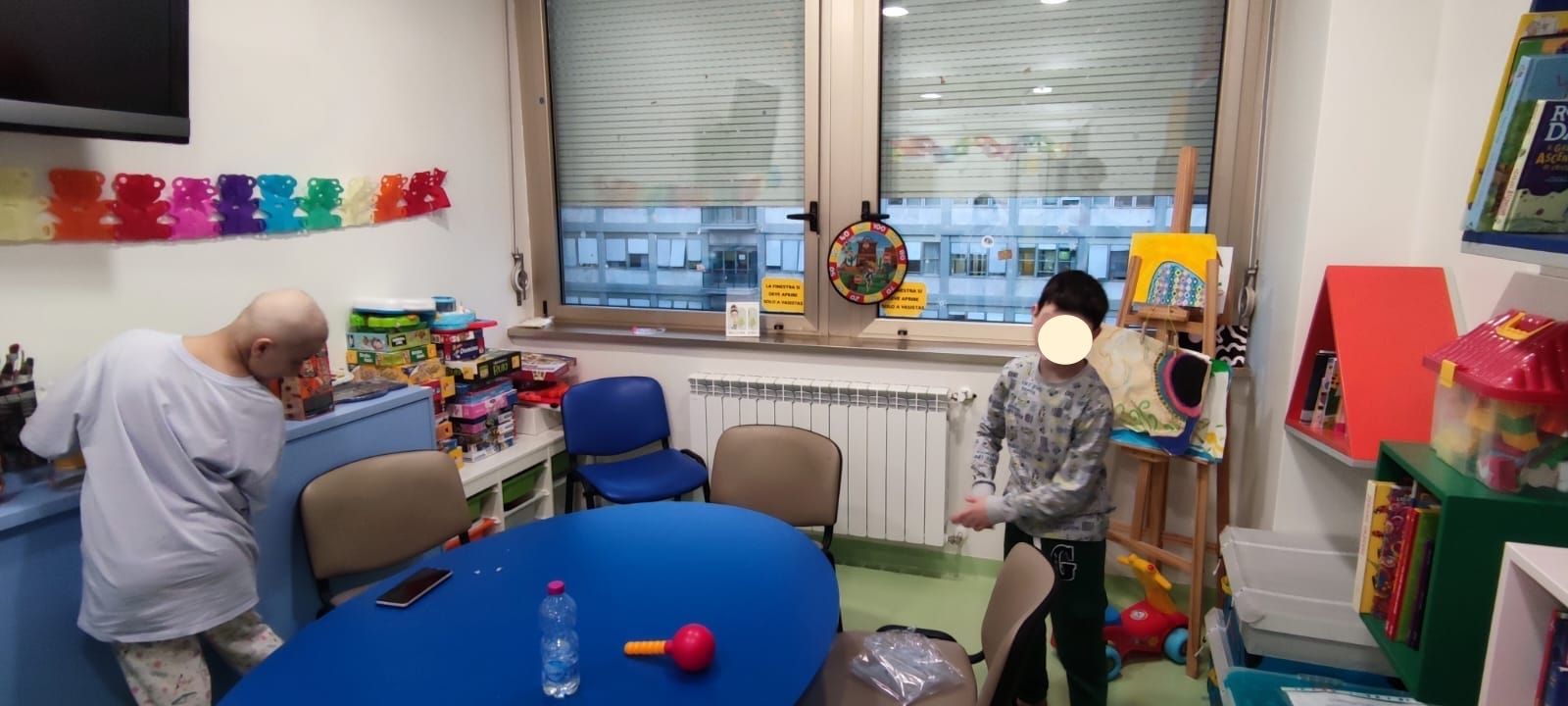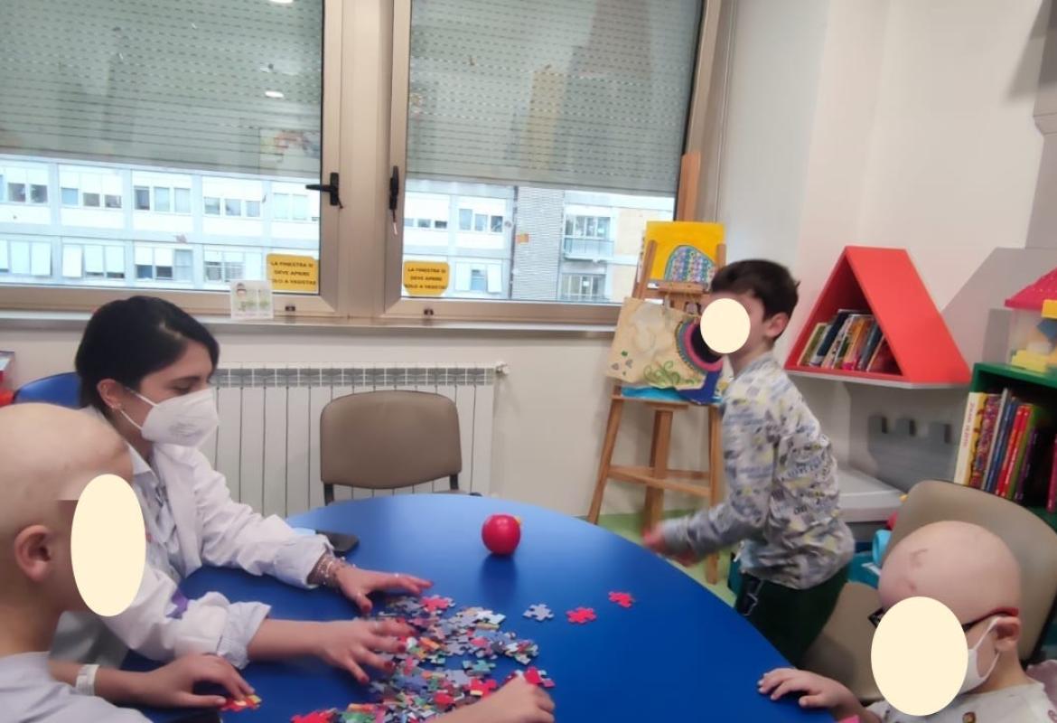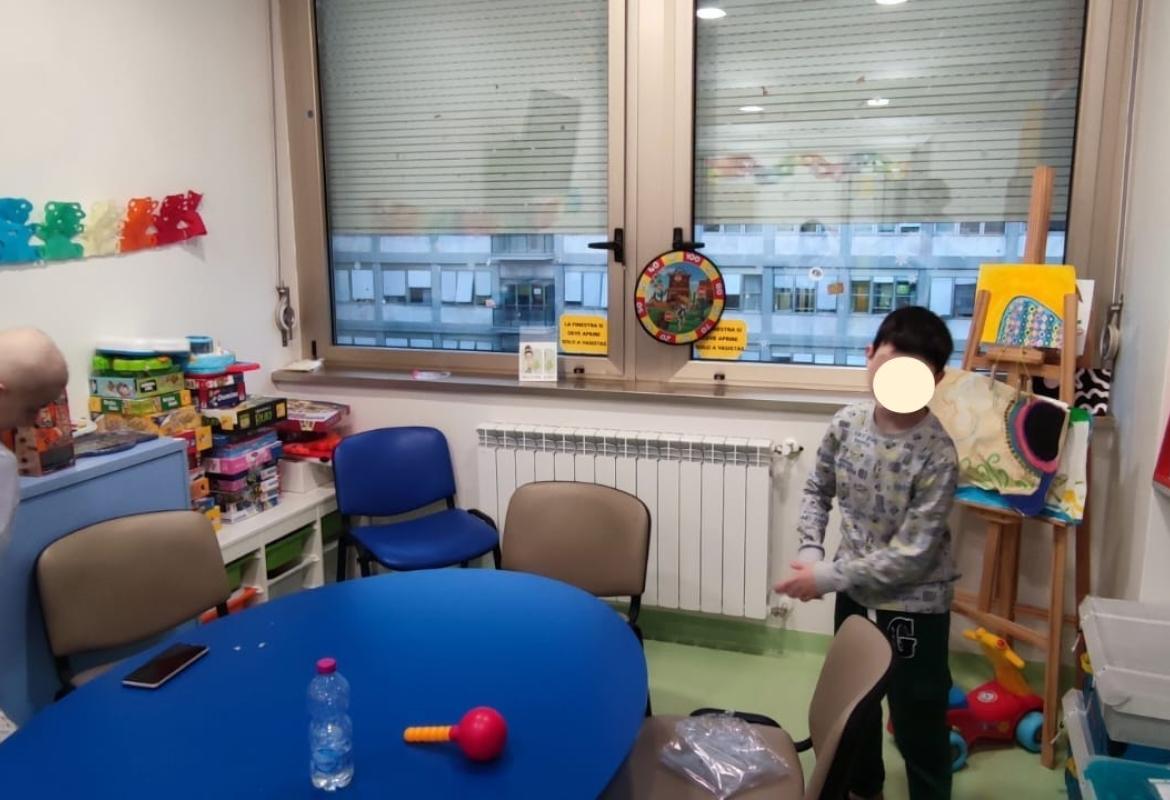 Oggi i nostri operatori Lucrezia e Leonardo, hanno passato il pomeriggio nel reparto di Oncologia Pediatrica assieme a E., G. e F.