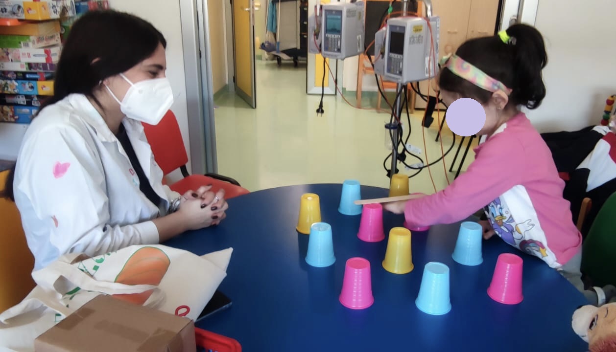 Mercoledì mattina Lucrezia e Leonardo sono entrati nel reparto di Oncologia Pediatrica del Policlinico Agostino Gemelli per svolgere il secondo incontro dedicato agli interventi del progetto Ludosport. Hanno incontrato la piccola I. ed insieme hanno utilizzato tutto ciò che di colorato avevano intorno, come bicchieri, palline, cestini e bastoncini, per stimolare il movimento di arti inferiori e superiori e per lavorare su coordinazione ed equilibrio… e tutto questo in una cornice ludica che ha riempito la sala giochi di tanto divertimento!