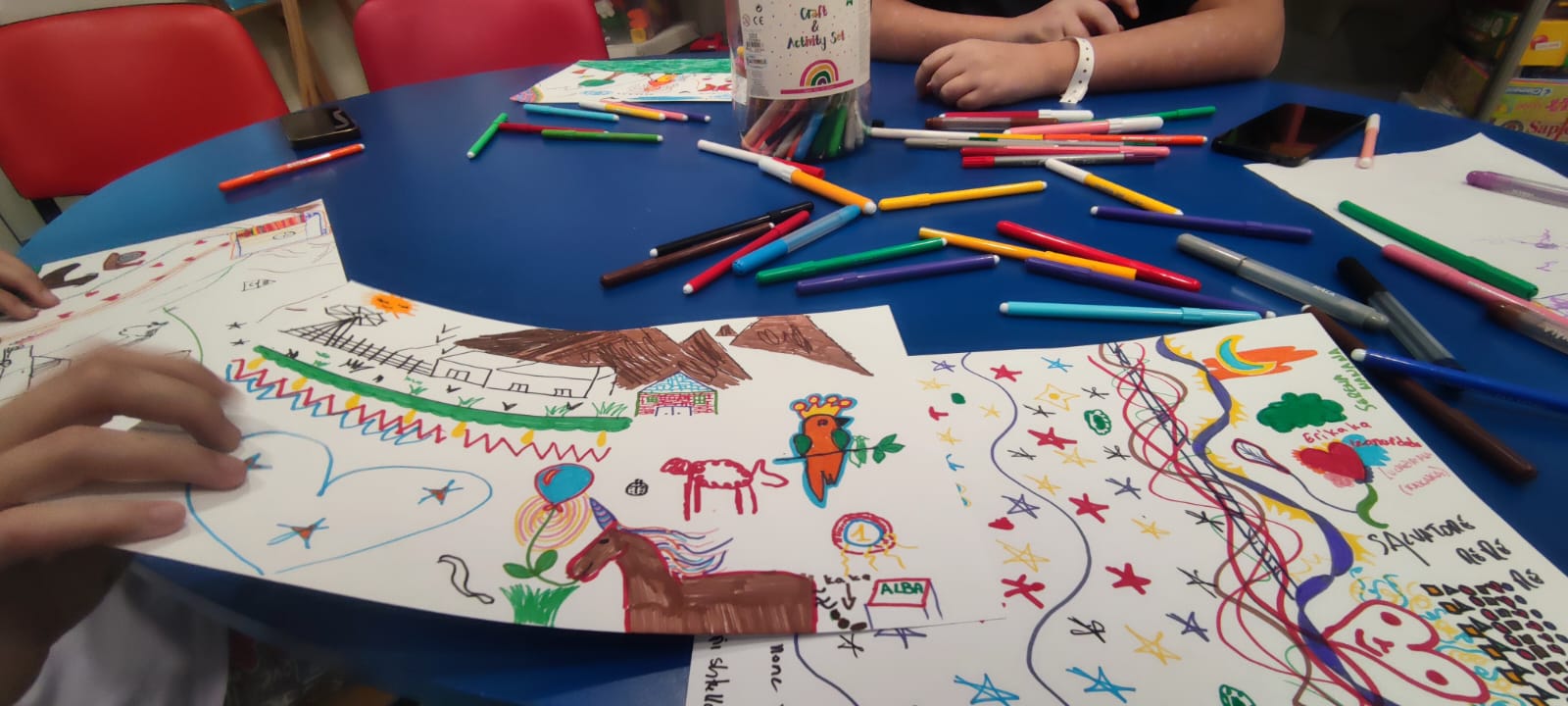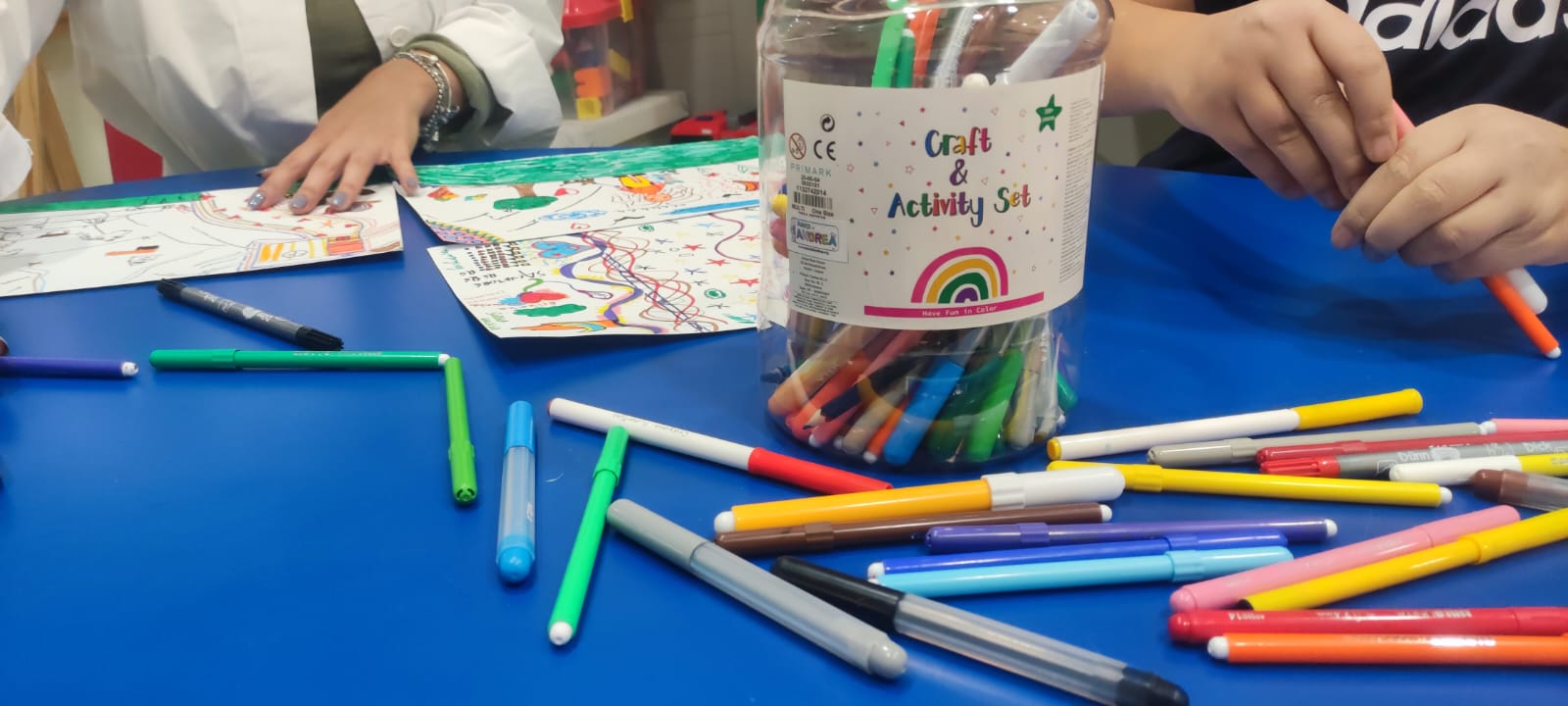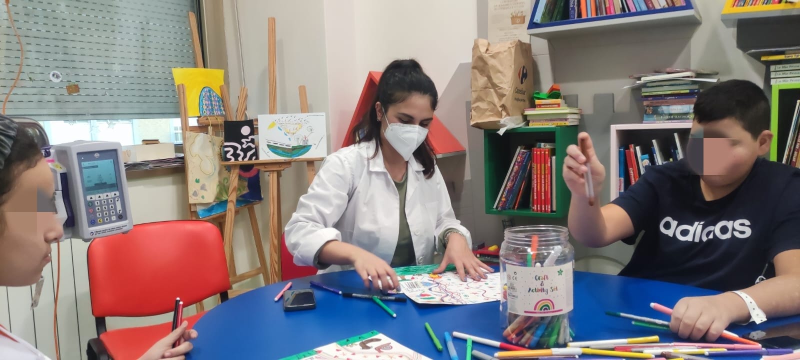 Pomeriggio artistico oggi al reparto di oncologia pediatrica del gemelli: I. , E. e B. si sono cimentate con il disegno! Tra maschere preparative per carnevale, disegni in cooperazione e piogge di brillantini, le risate di certo non sono mancate. Al termine della sessione artistica, la nostra Erika ha intrattenuto tutti fornendoci degli strumenti musicali: a quel punto la nostra "orchestra" si è sbizzarrita improvvisando sulle note di canzoni che ognuno sceglieva a turno! Il ritmo era così coinvolgente, che abbiamo catturato anche le mamme e i papà!