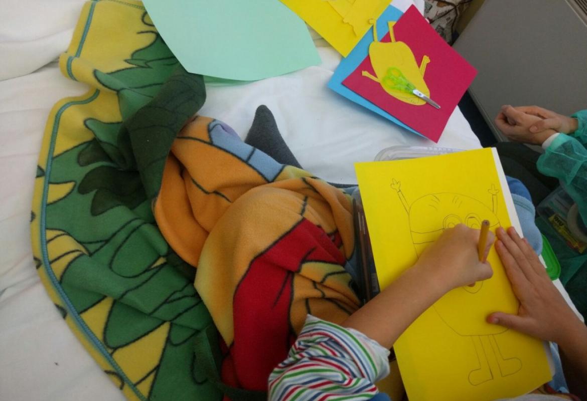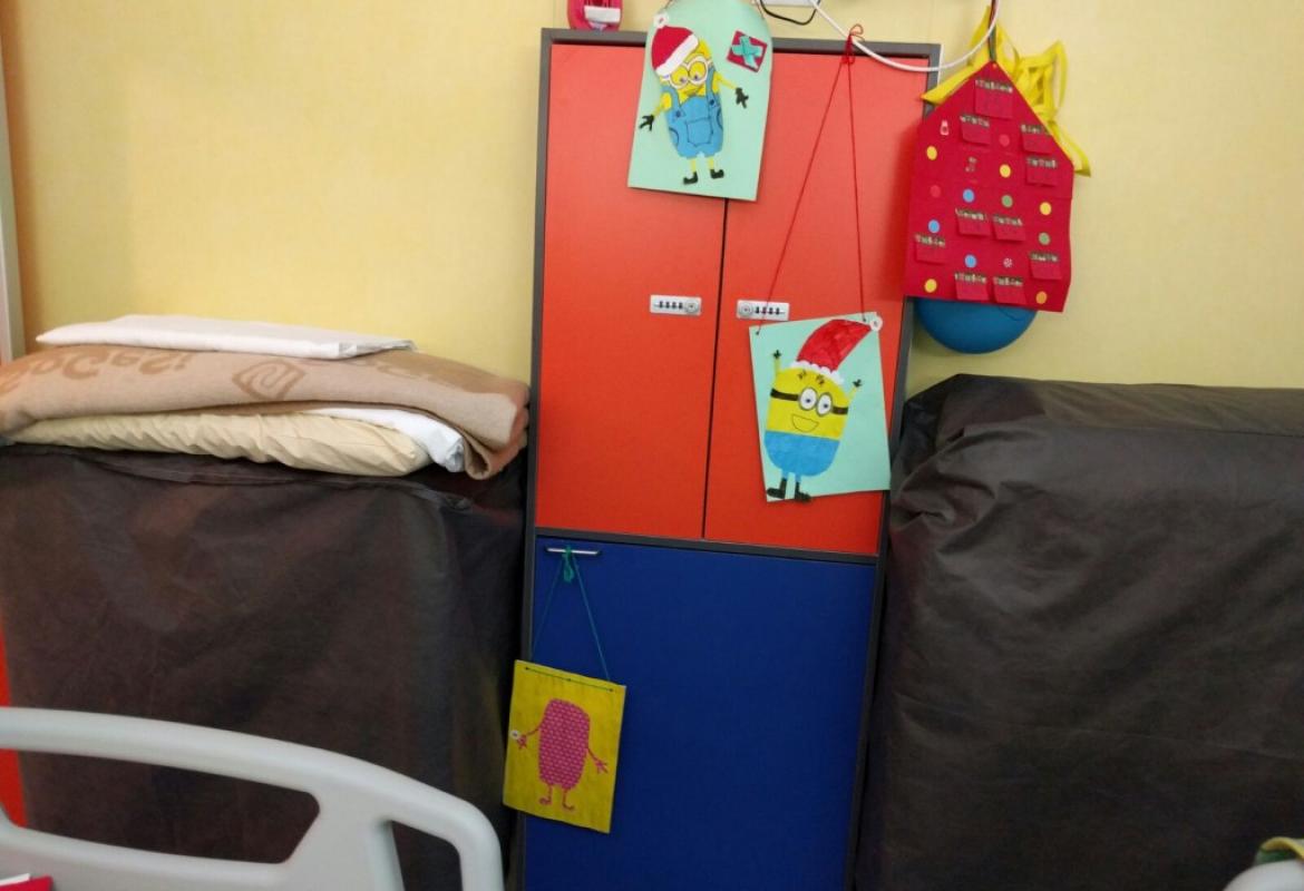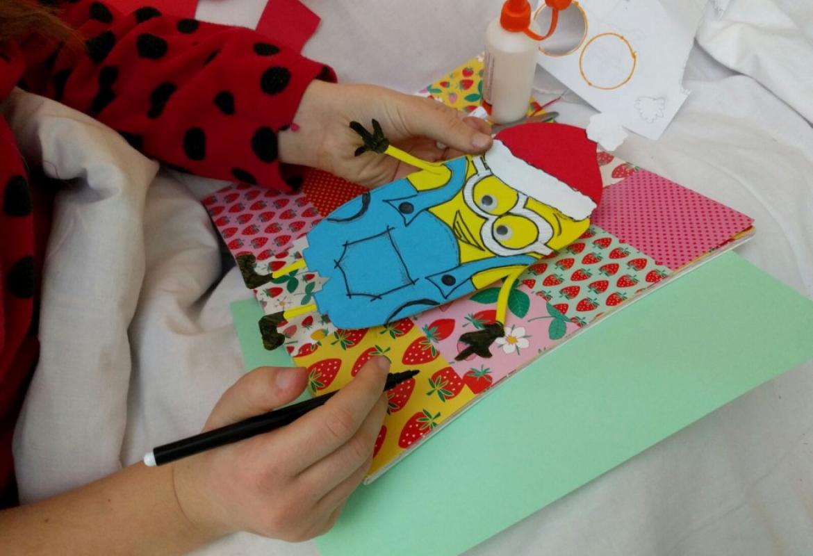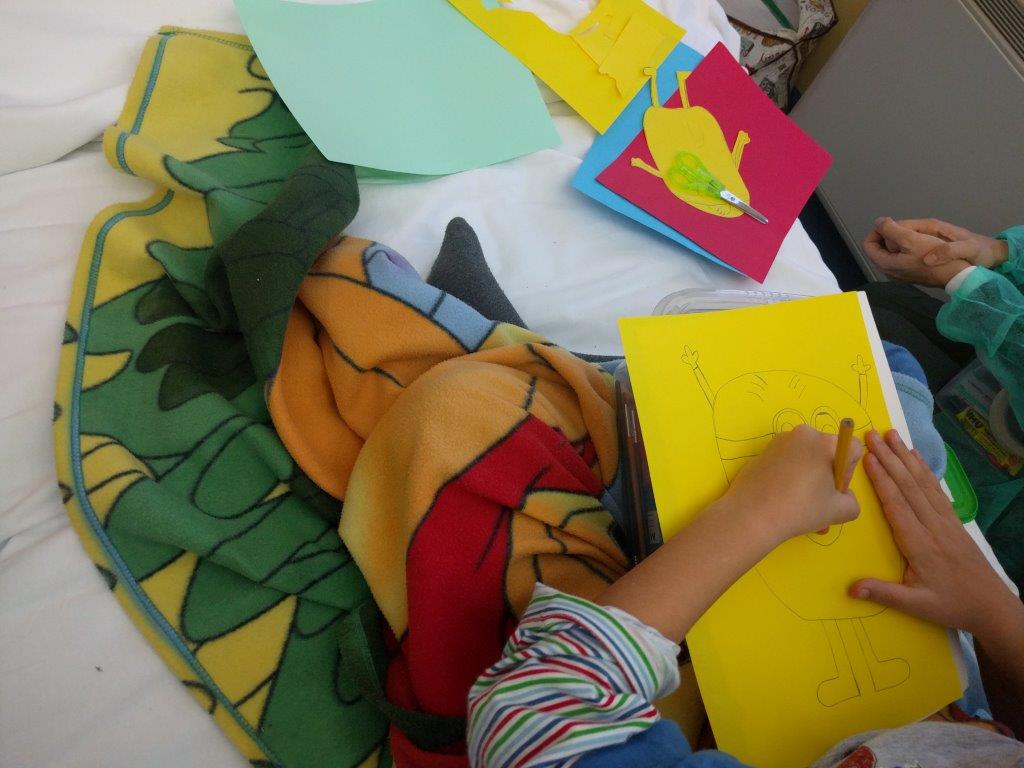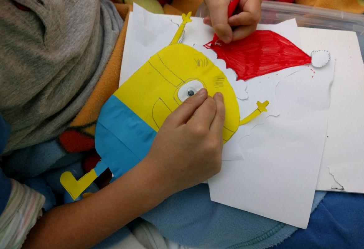 Mancano solo dieci giorni al santo Natale quando incontriamo nel reparto di Ematologia Pediatrica del Policlinico Umberto I un bambino e una ragazzina che guardano il film dei Minions. Nelle lor condizioni, guardare un film rilassante è l'attività più indicata, perchè non si possono alzare. Fino all'arrivo delle ludoterapiste! Facile pensare ad una proposta: costruire un Babbo Minion per un Giallo Natale!