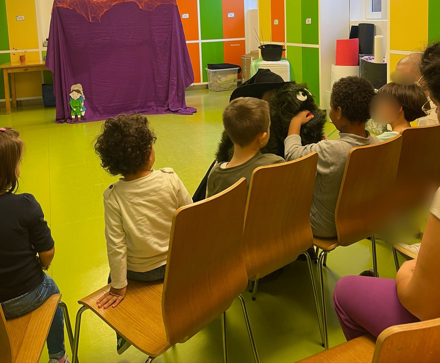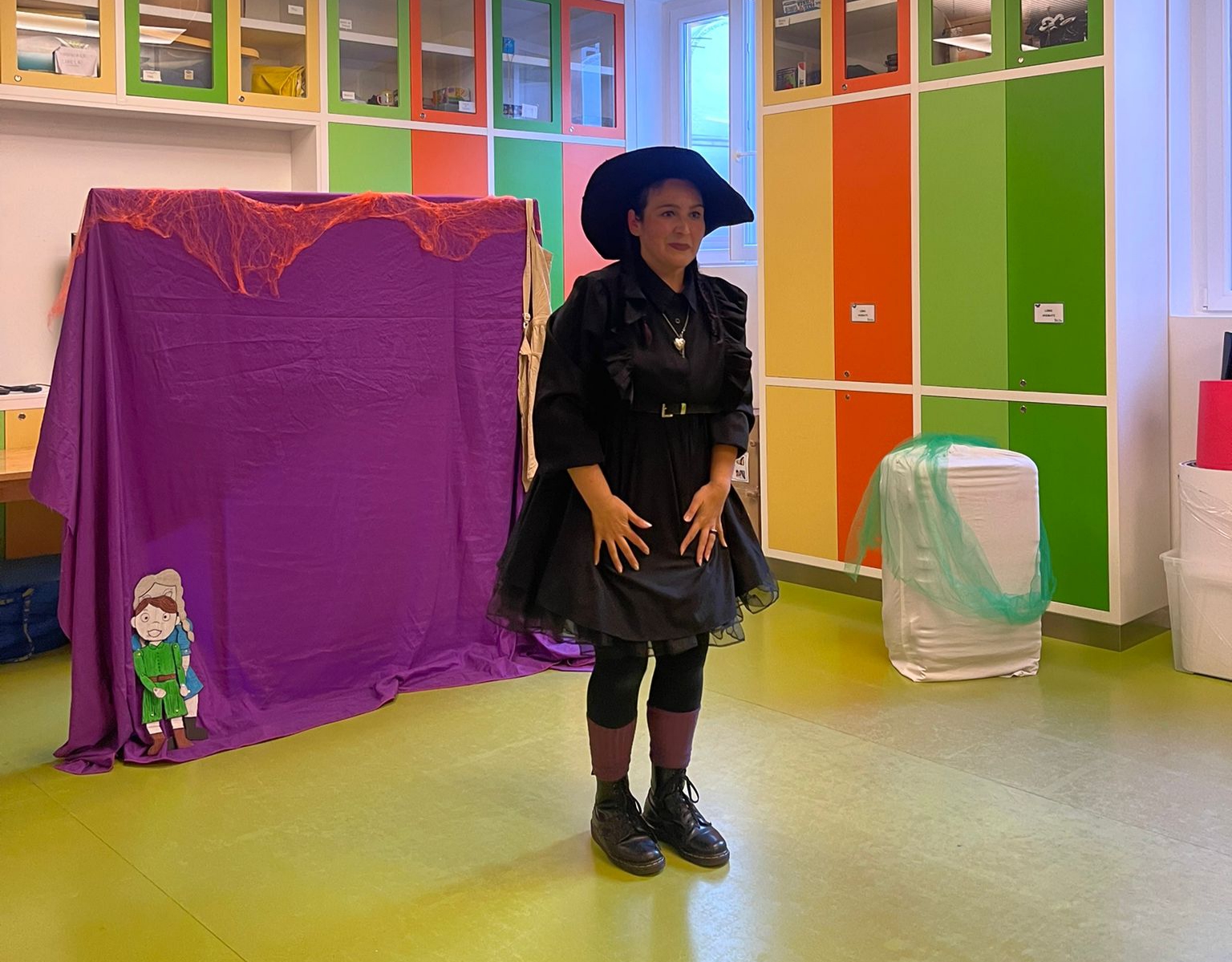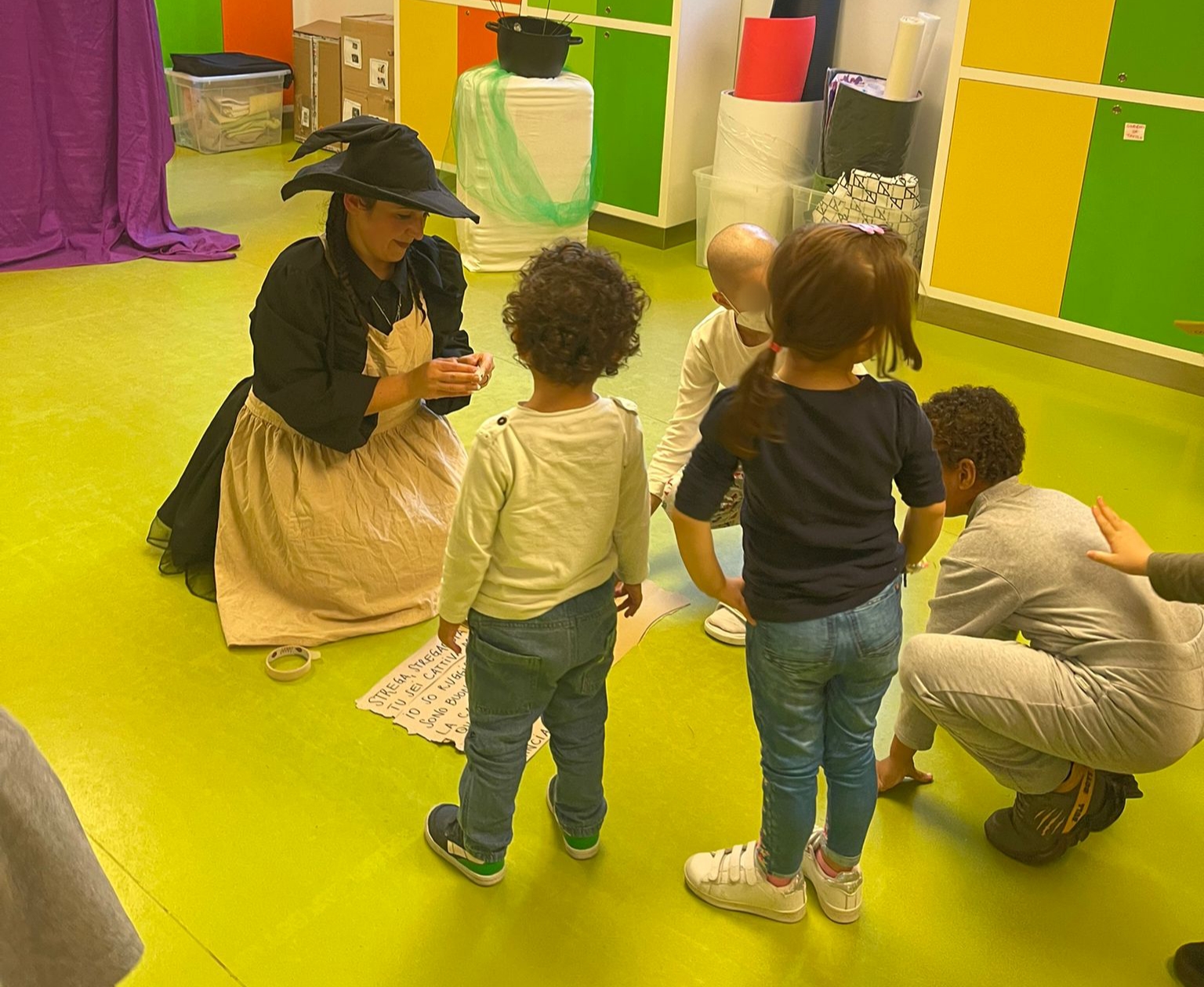 Lo spettacolo “un Halloween da Fiaba" è arrivato dai bimbi del Peter Pan. Strega e mostro sono giunti per raccontare una storia terrificante e divertente allo stesso tempo, avranno però bisogno dell'aiuto dei bimbi, che come sempre si mostrano super entusiasti a partecipare agli spettacoli di Corinna!