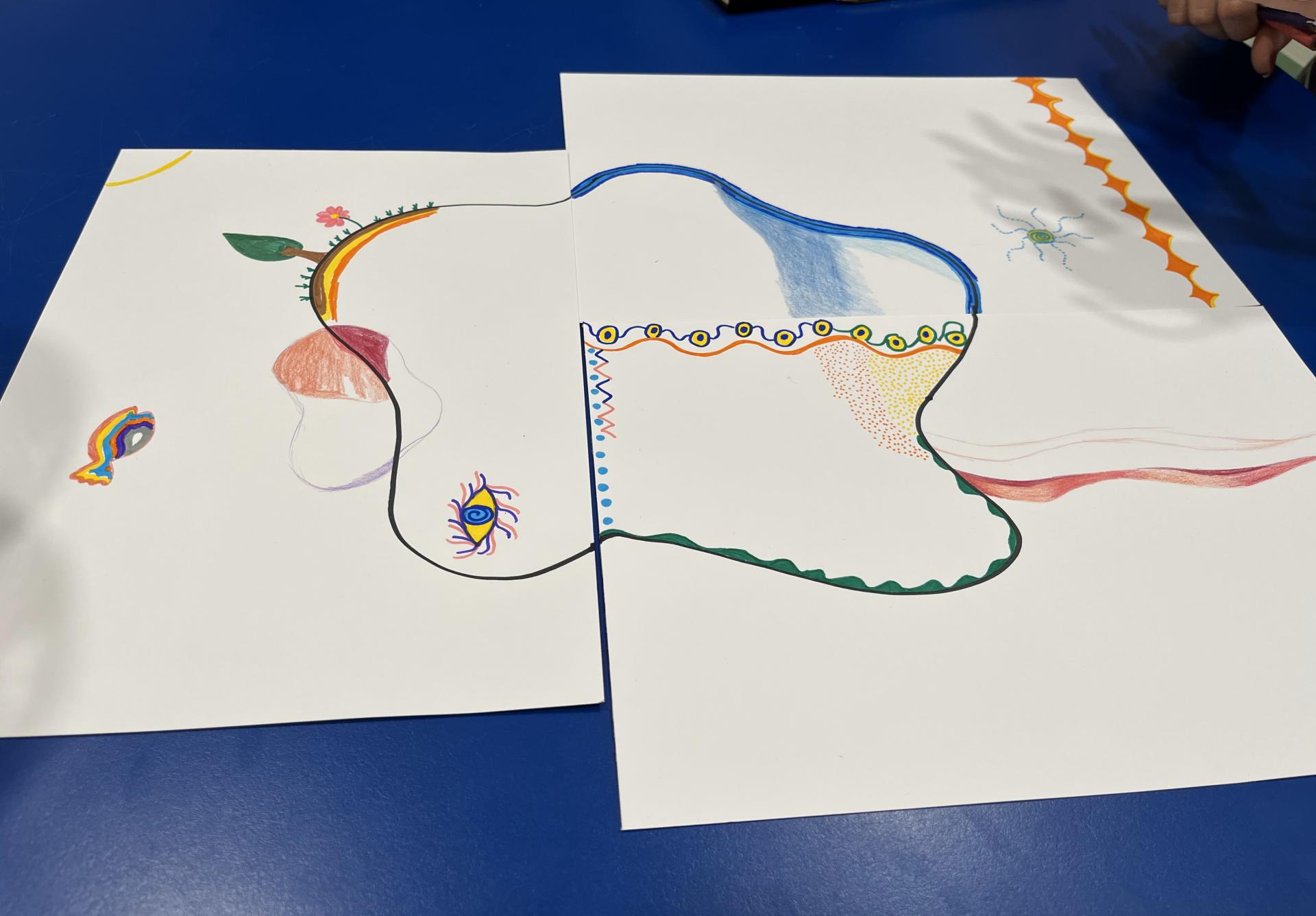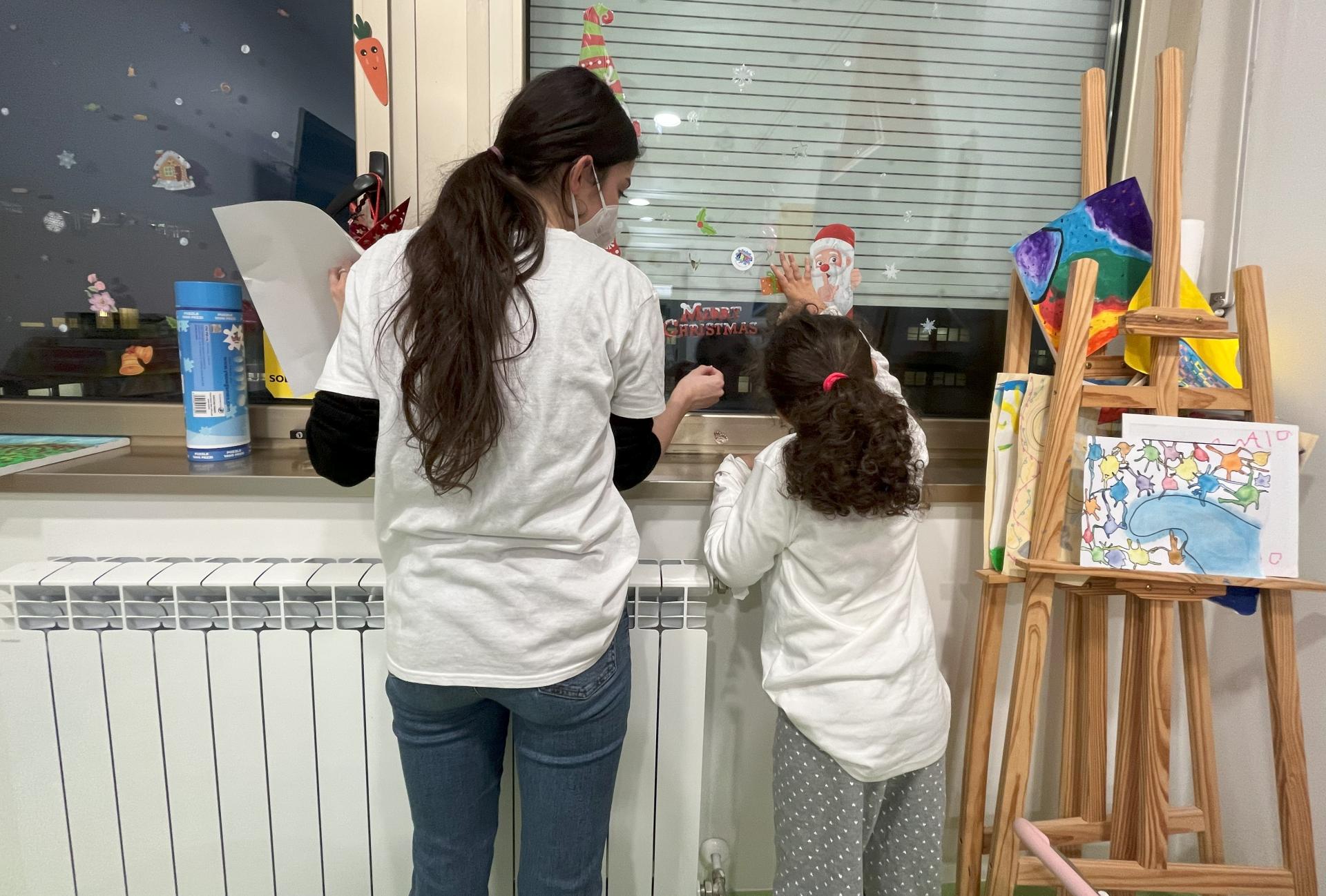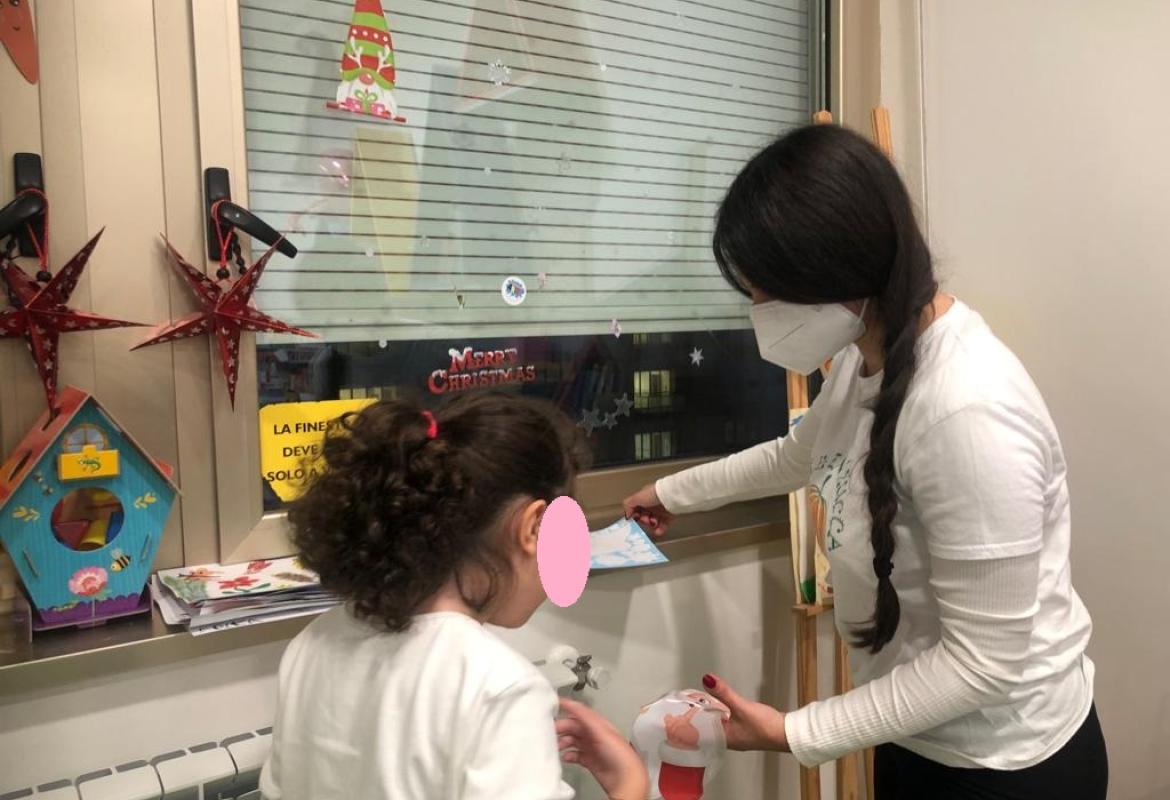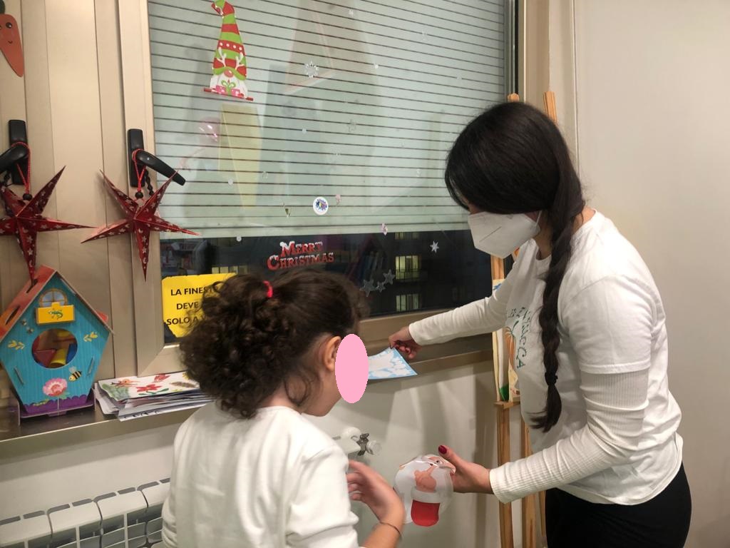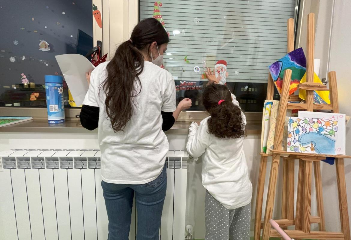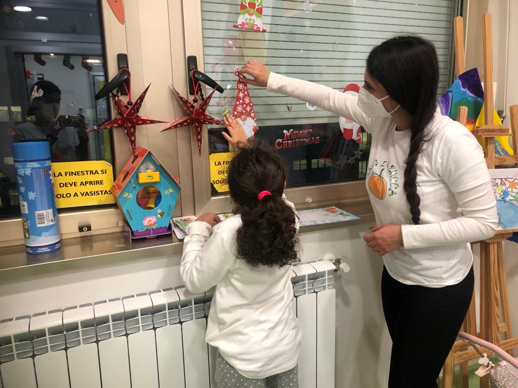 Nel frattempo, nella sala giochi di Oncologia Pediatrica, Lucrezia e Virginia hanno completato le decorazioni natalizie insieme alla piccola S. e si sono divertite a comporre una collaborazione artistica con G., appassionata di arti figurative.