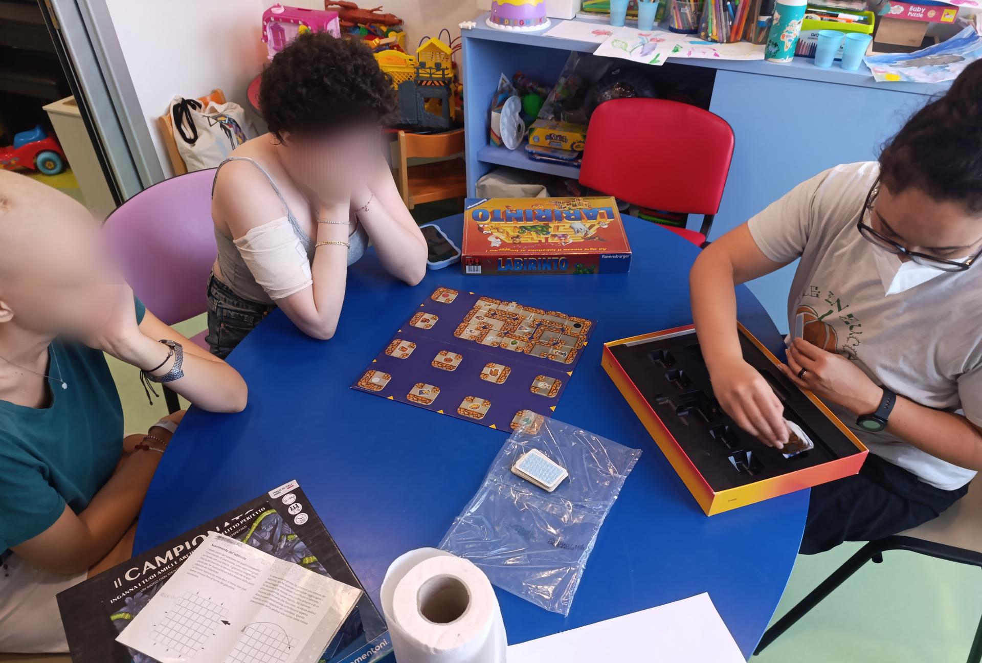 Che pomeriggio all'insegna del divertimento con le nostre volontarie e i bambini e le bambine del Reparto. Lucrezia ha incontrato D., insieme avevano a disposizione tutta la sala giochi e hanno potuto fare di tutto, in particolare giocare a biliardino, una sfida avvincente che ha visto D. vincitore! Corinna e Nhamhiria, invece, hanno incontrato F. e C., due adolescenti super in gamba con cui hanno passato del tempo chiacchierando e scoprendo giochi nuovi per qualcuna di loro, come "Labirinto" e "Nè sì nè no".