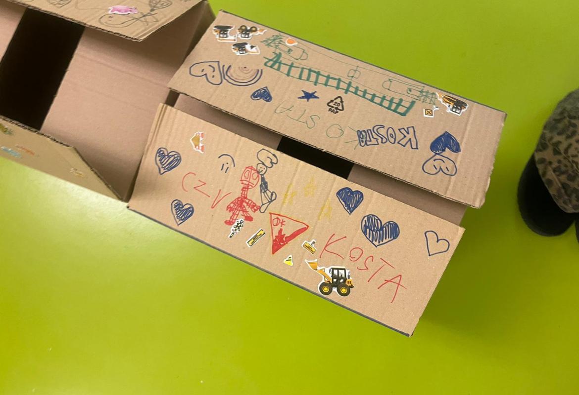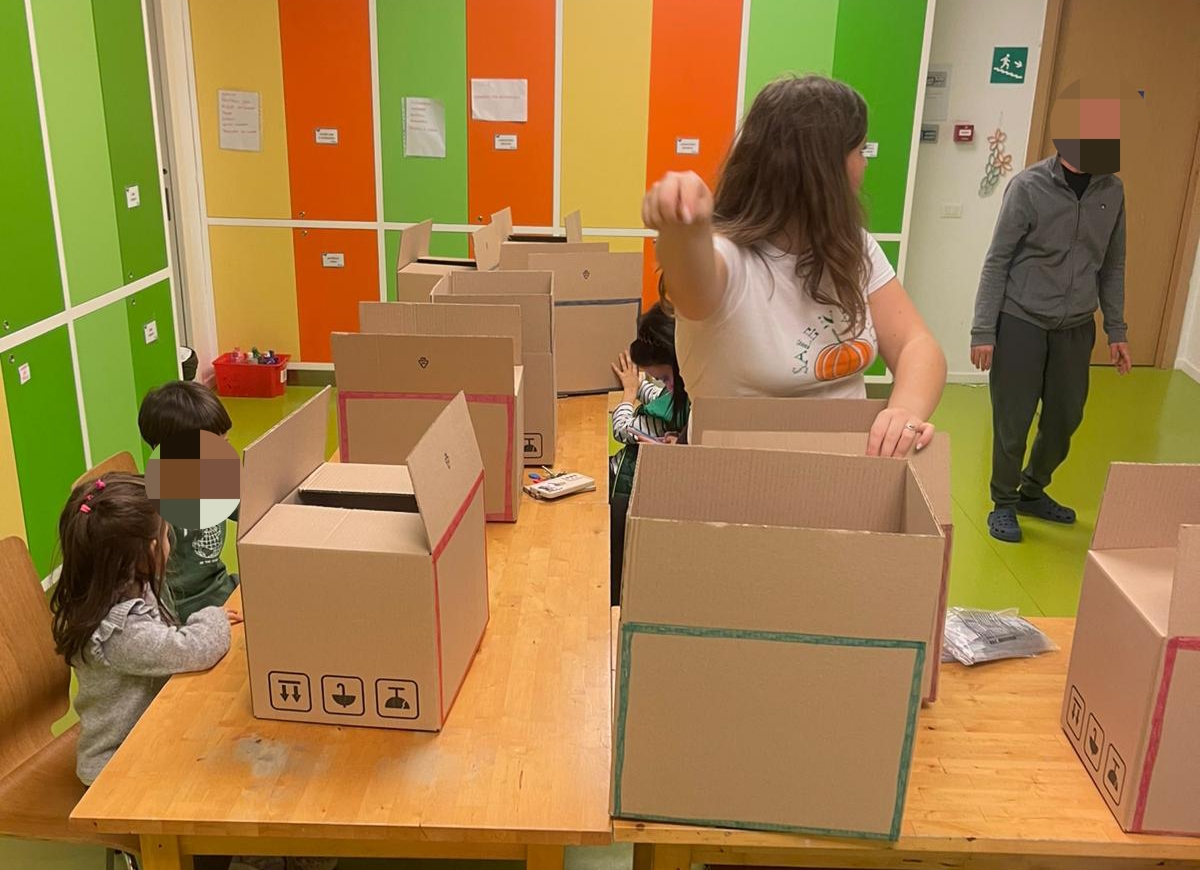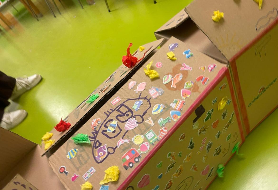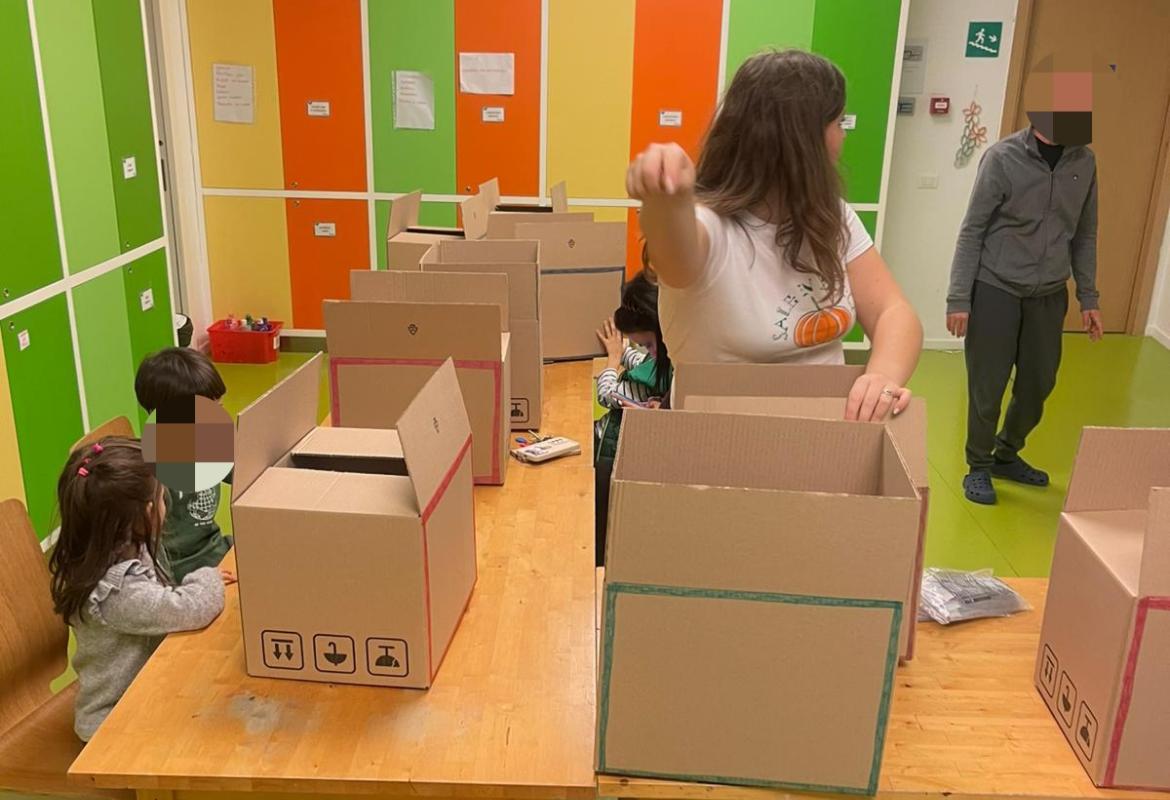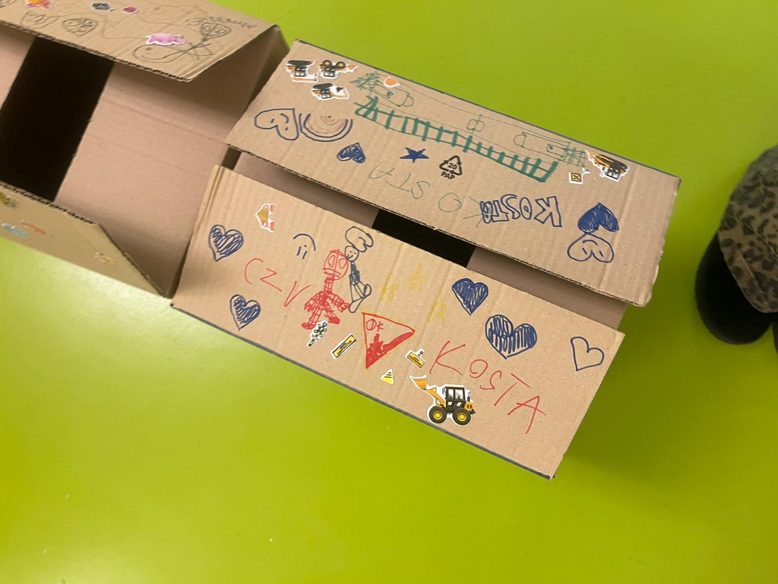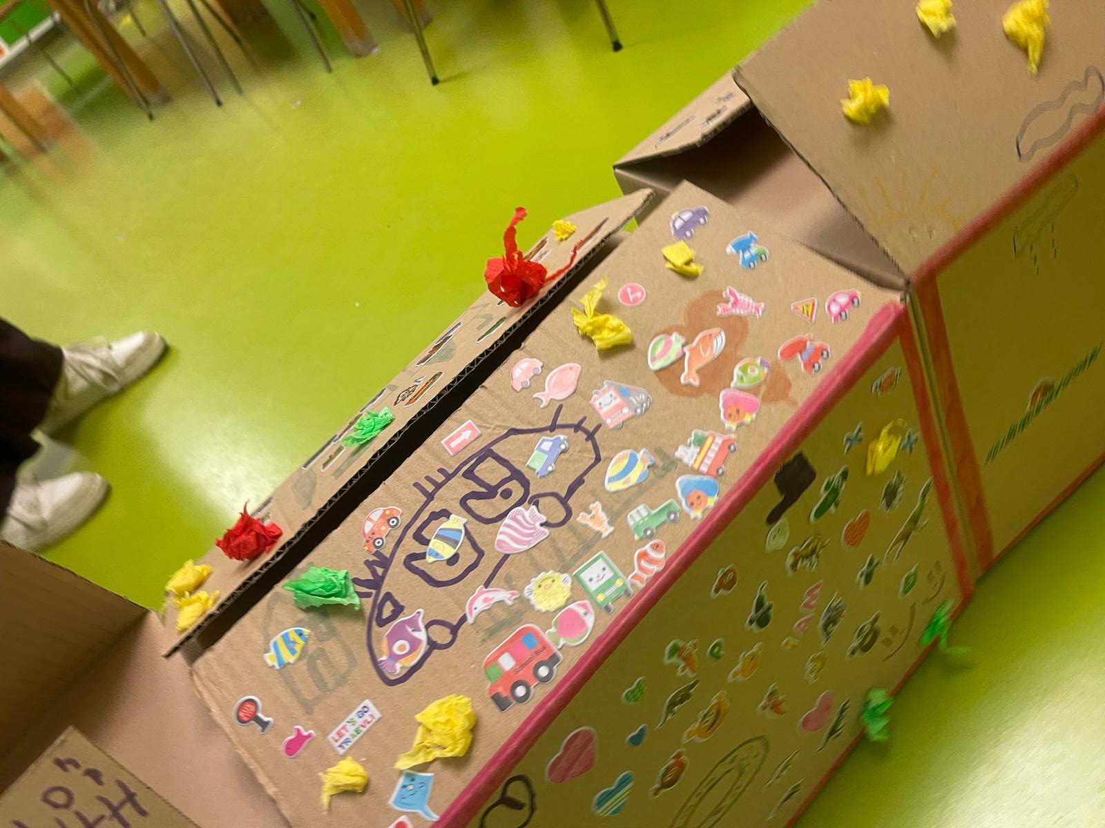 Oggi, insieme ad Erika ed Angelica i bambini ospiti del Peter Pan hanno costruito e decorato i vagoni di un trenino fatto di scatole di cartone, ognuno applicando sticker e disegni per personalizzarlo secondo i propri gusti artistici!