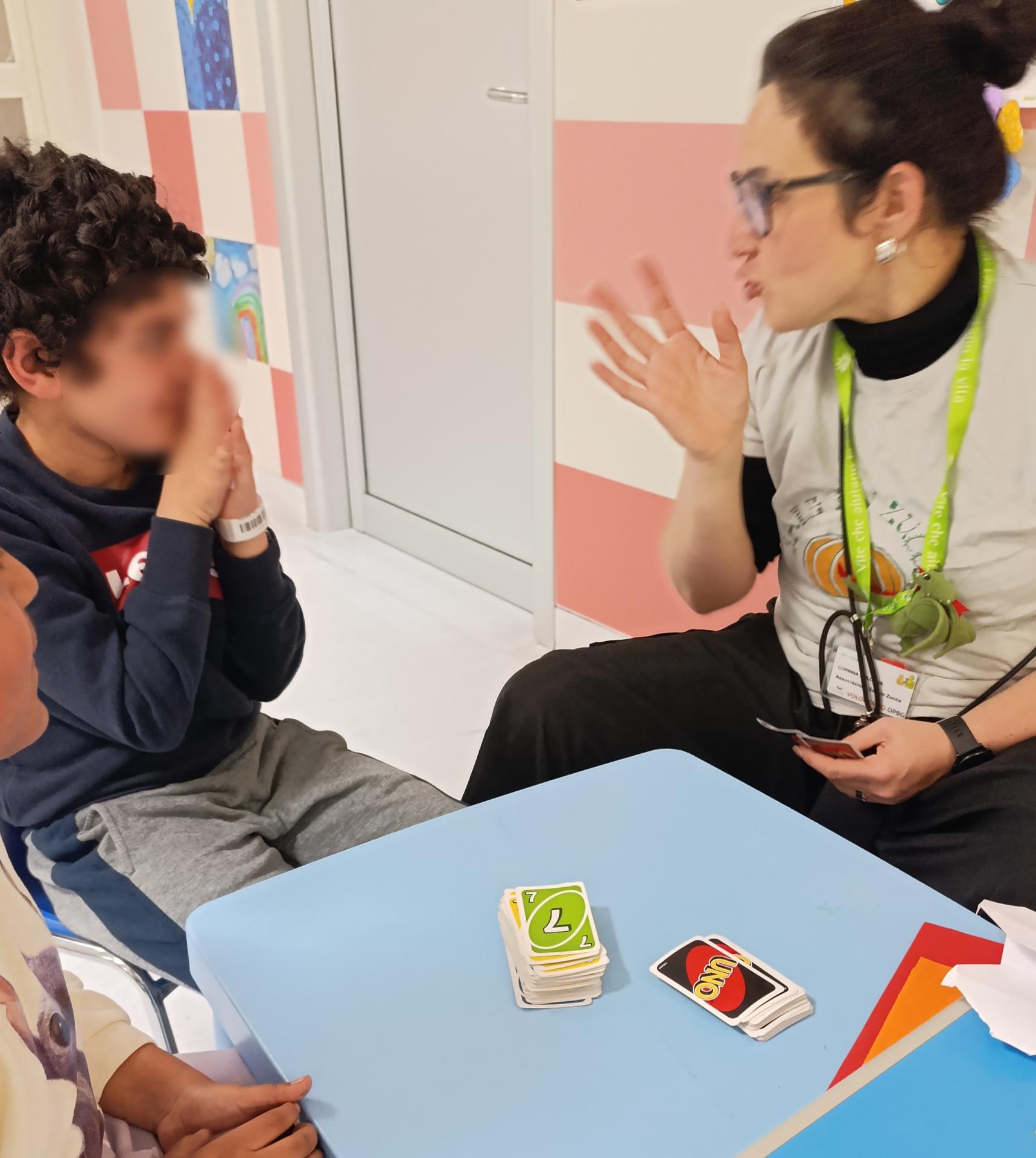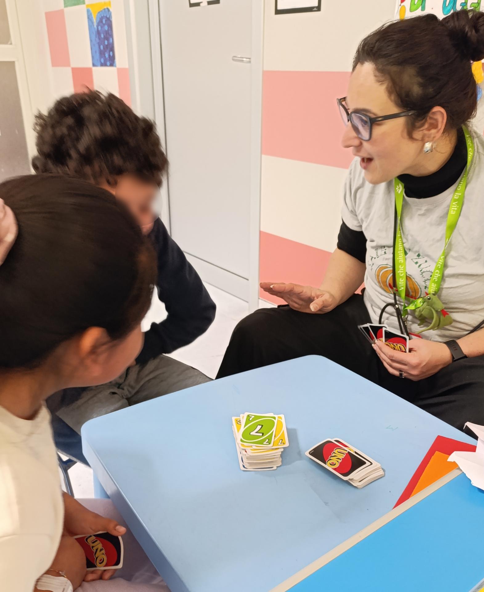 Corinna e Nhamhiria hanno incontrato molti bambini nella sala d’attesa del Day Hospital con cui si sono divertite a fare tante attività diverse. Prima hanno giocato a memory, poi con le carte da Uno e, infine, R. ha guidato tutti e tutte in un mini “workshop” di origami, insegnando come si fanno cuori e aeroplanini di carta!