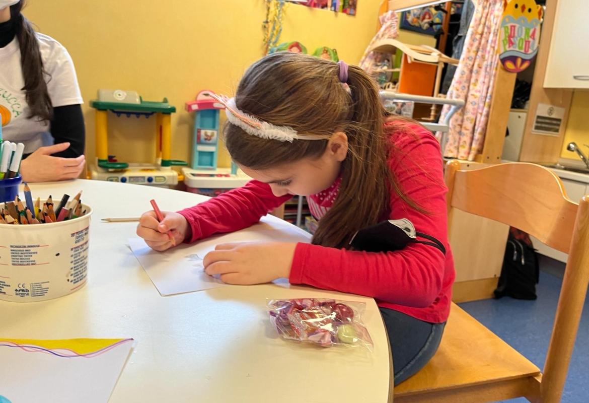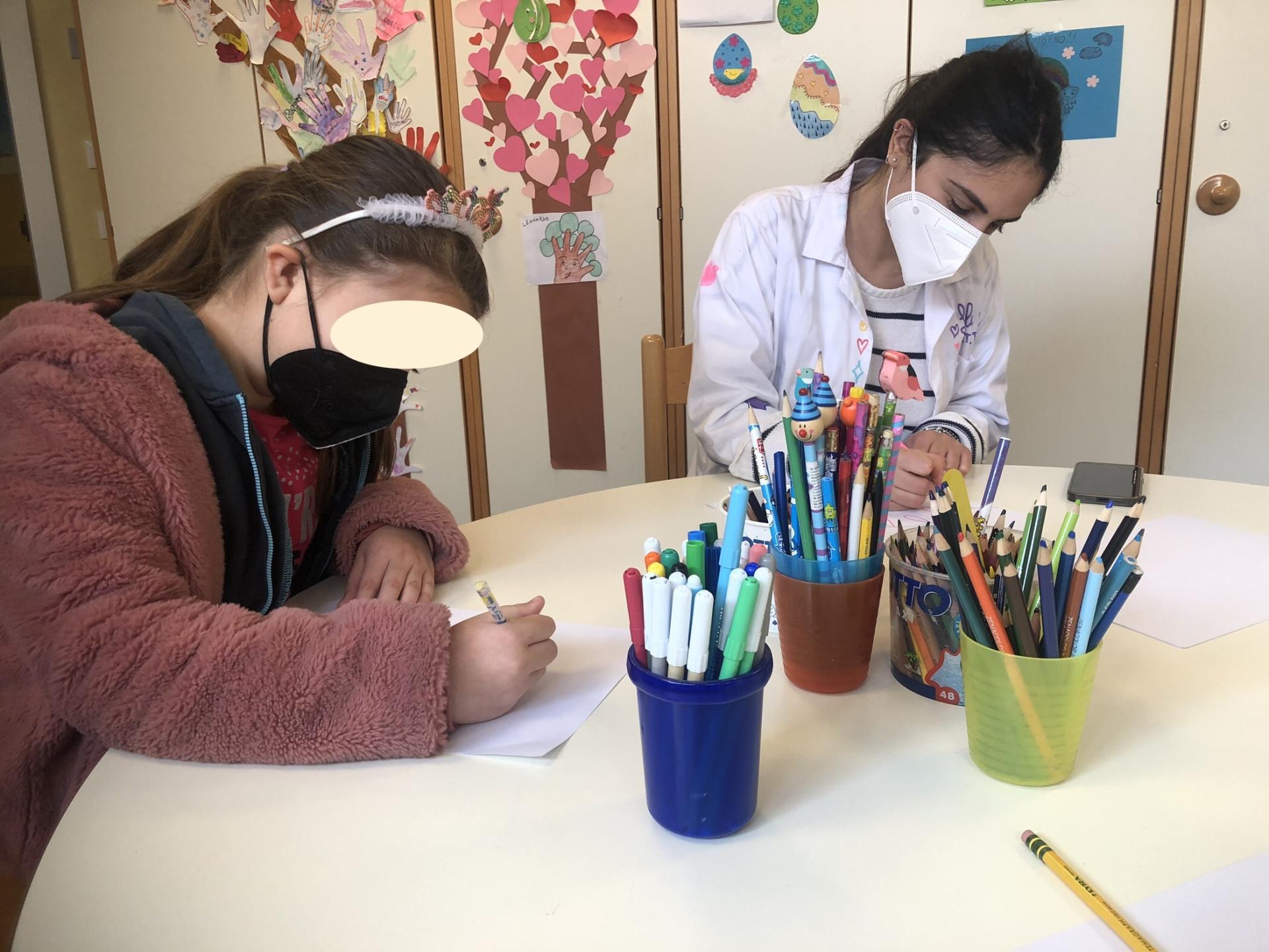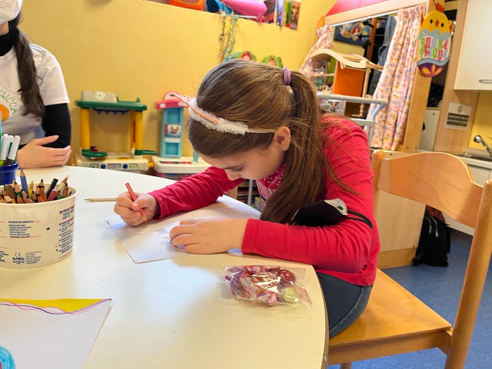 Al Day Hospital del Policlinico Umberto I Lucrezia e Virginia hanno conosciuto la piccola P. Insieme hanno disegnato utilizzando tanti colori, e tra un colore e l’altro ci sono state tante chiacchere, rendendo questa giornata ricca di sorrisi e divertimento!