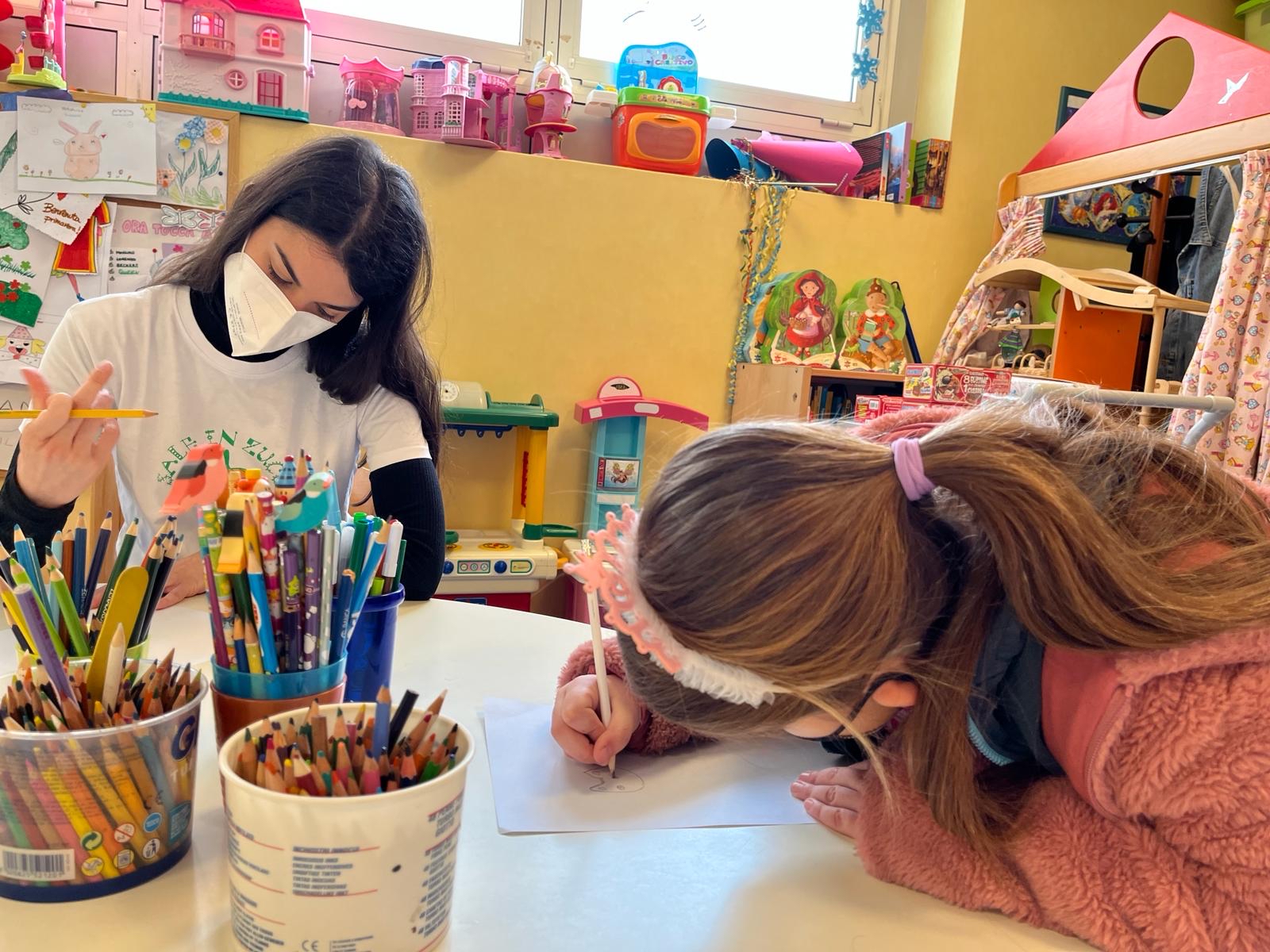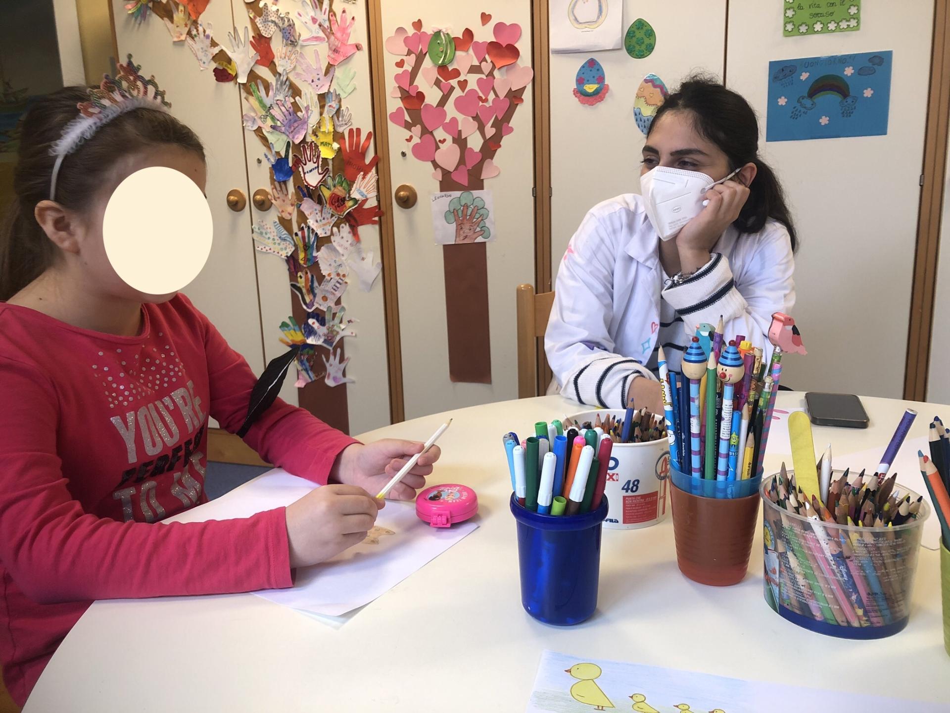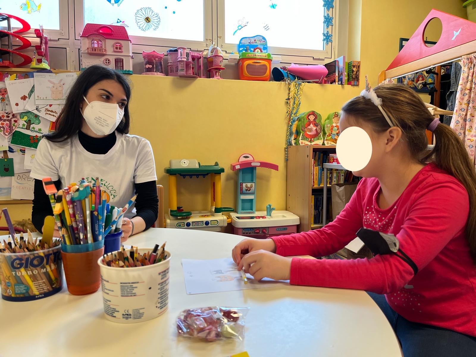 Al Day Hospital del Policlinico Umberto I Lucrezia e Virginia hanno conosciuto la piccola P. Insieme hanno disegnato utilizzando tanti colori, e tra un colore e l’altro ci sono state tante chiacchere, rendendo questa giornata ricca di sorrisi e divertimento!