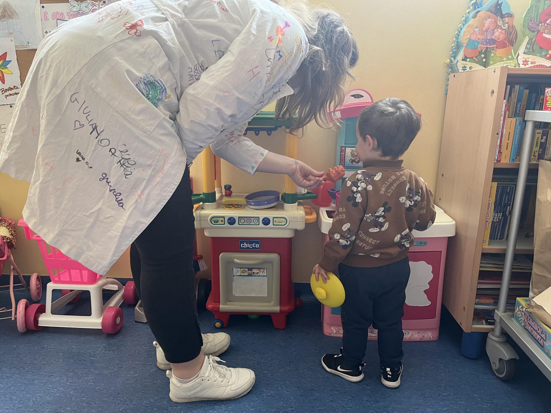 Martedì mattina Erika e Lucrezia sono state nel Day Hospital di Ematologia del Policlinico Umberto I e hanno incontrato due simpatici bimbi. Con il piccolo S. si sono divertite a cucinare ottimi piatti utilizzando la cucinetta in sala giochi, mentre con G. hanno giocato, disegnato e mixato le due cose tramite Pictionary. È stata proprio una mattinata allegra e all’insegna della collaborazione!